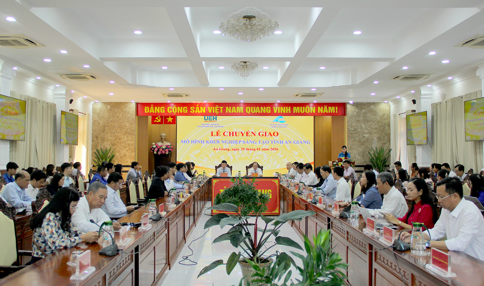 Ngày 29/01/2026, Đại học Kinh tế Thành phố Hồ Chí Minh (UEH) đã chính thức chuyển giao mô hình khởi nghiệp sáng tạo, đồng thời ra mắt nền tảng trực tuyến hỗ trợ ươm tạo khởi nghiệp sáng tạo tỉnh An Giang. Sự kiện đánh dấu bước triển khai cụ thể thỏa thuận hợp tác giữa hai bên trong việc thúc đẩy hoạt động khởi nghiệp gắn với đổi mới và chuyển giao mô hình hỗ trợ phát triển địa phương.