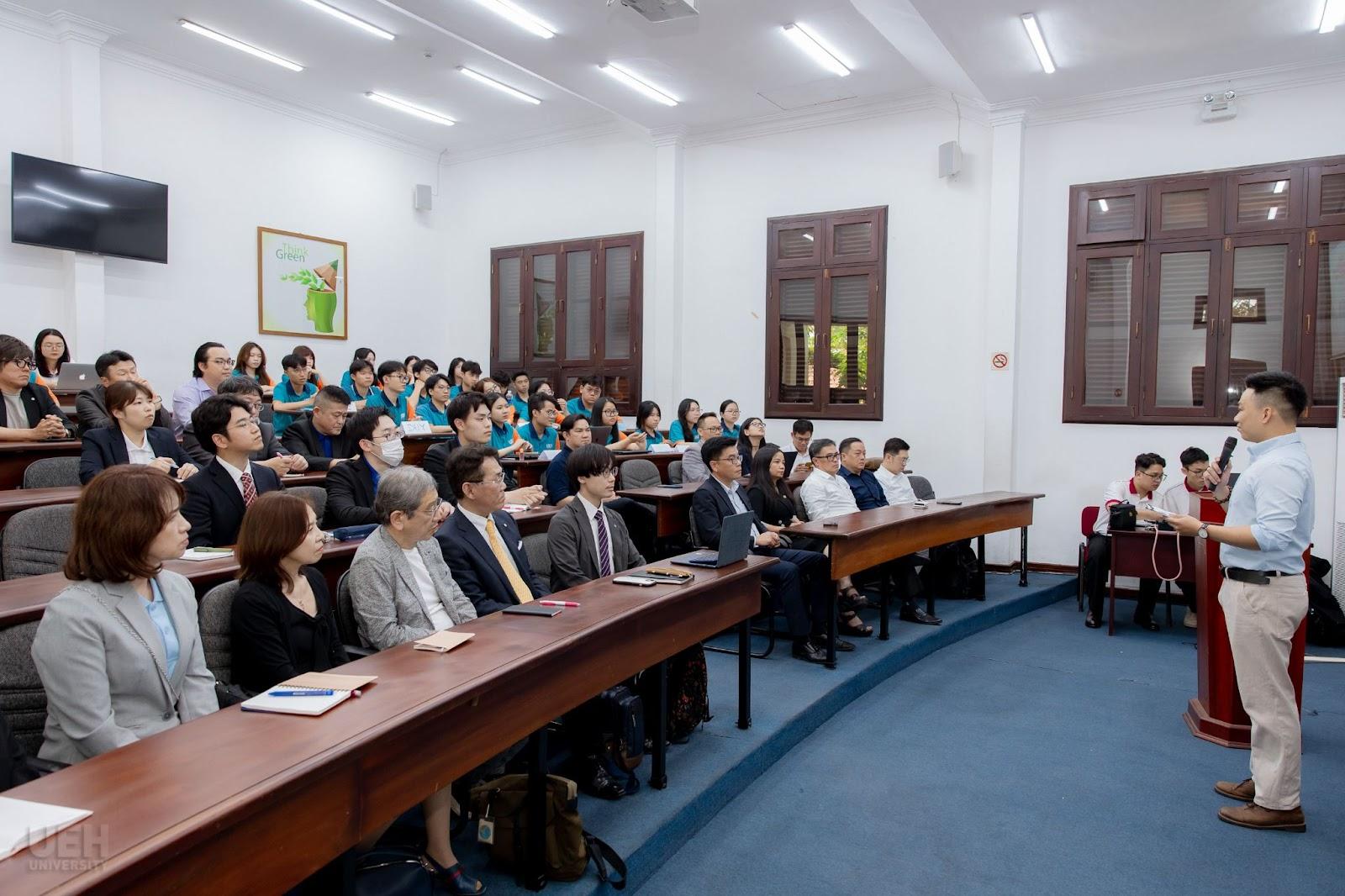 Phát biểu chào mừng tại sự kiện, PGS.TS. Phạm Khánh Nam chia sẻ về định hướng phát triển, mô hình đào tạo gắn với thực tiễn và chiến lược quốc tế hóa trong giáo dục đại học. Đây cũng là dịp để các đối tác Nhật Bản hiểu rõ hơn về năng lực đào tạo cũng như định hướng hợp tác quốc tế của UEH.