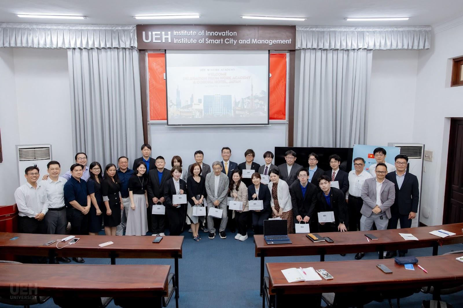 Ngày 04/3/2026, Đại học Kinh tế Thành phố Hồ Chí Minh (UEH) đã tổ chức đón tiếp và làm việc với Đoàn Work Academy và Corona Hotel (Nhật Bản). Chương trình nằm trong khuôn khổ triển khai Thỏa thuận hợp tác ba bên giữa UEH - Work Academy - GOEN Business Training, đồng thời là một trong những hoạt động hướng tới kỷ niệm 50 năm thành lập UEH.