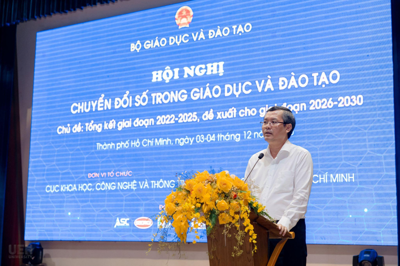 Từ ngày 3 – 4/12/2025, Hội nghị “Chuyển đổi số trong giáo dục và đào tạo” do Bộ Giáo dục và Đào tạo (GD&ĐT) tổ chức tại Đại học Kinh tế Thành phố Hồ Chí Minh (UEH) đã quy tụ lãnh đạo Bộ, đại diện các đơn vị quản lý giáo dục, các địa phương và cơ sở đào tạo trên cả nước, nhằm đánh giá kết quả thực hiện Quyết định 131/QĐ-TTg về tăng cường ứng dụng CNTT và chuyển đổi số giai đoạn 2022-2025. Đồng thời thảo luận, đề xuất các giải pháp định hướng cho giai đoạn tiếp theo 2026-2030.