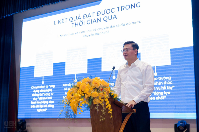 Với vai trò đồng hành tổ chức, đồng thời là một trong những đại học tiên phong về chuyển đổi số tại Việt Nam, tại Hội nghị, UEH đã chia sẻ chiến lược chuyển đổi số, mô hình và các bài học thực tiễn của Nhà trường trong hành trình số hóa, hướng tới xây dựng hệ sinh thái đại học thông minh.