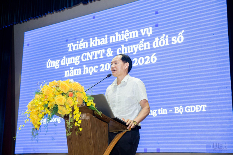 Vinh dự đồng hành cùng Bộ Giáo dục và Đào tạo trên hành trình chuyển đổi số, PGS.TS. Bùi Quang Hùng - Phó Giám đốc phụ trách UEH chia sẻ: “Chuyển đổi số trong giai đoạn 2026-2030 sẽ mang tính bản lề hơn với nhiệm vụ tái định nghĩa đại học trong kỷ nguyên AI và dữ liệu mở. UEH xem chuyển đổi số không phải chỉ là một dự án công nghệ, mà là hành trình tái thiết mô hình đại học hiện đại – nơi dữ liệu trở thành nền tảng của quản trị và đào tạo; nơi mọi quy trình vận hành liền mạch, minh bạch; và nơi mỗi sinh viên được trao quyền học tập bằng công nghệ, theo cách cá nhân hóa và mở rộng không giới hạn. Nhà trường sẵn sàng đồng hành cùng Bộ GD&ĐT xây dựng các nguyên tắc, chuẩn dữ liệu và lộ trình đại học thông minh quốc gia.”