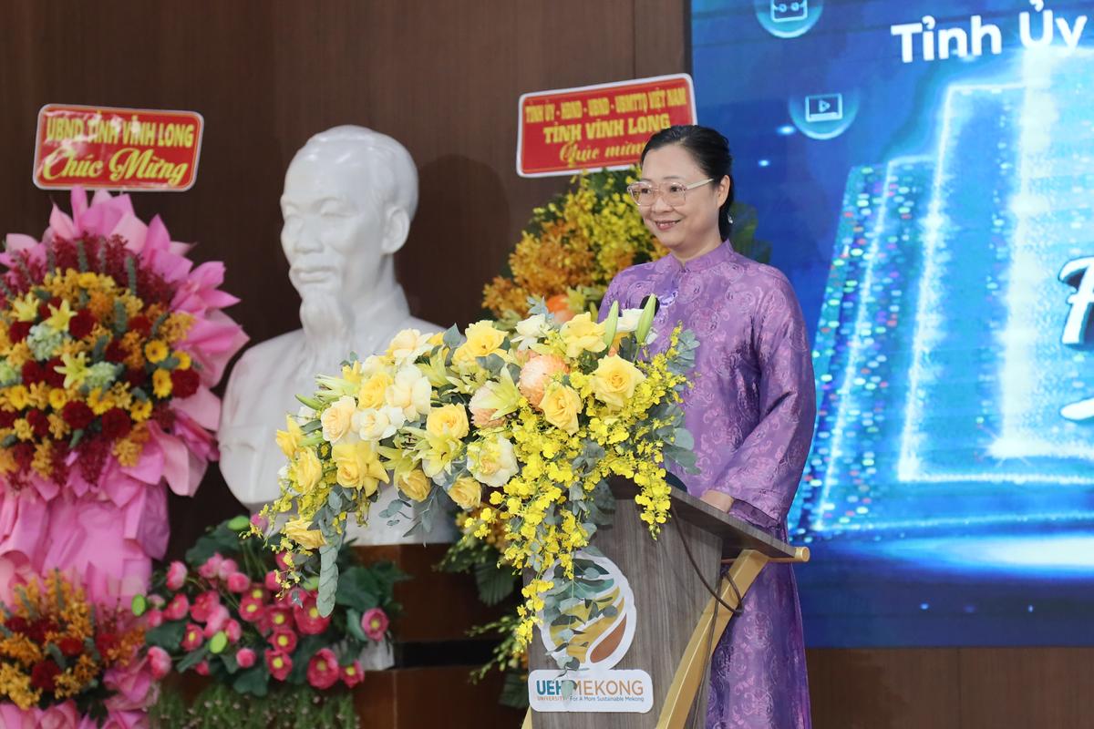 TS. Nguyễn Thị Quyên Thanh - Tỉnh ủy viên, Phó Chủ tịch UBND Tỉnh Vĩnh Long phát biểu tại buổi lễ
