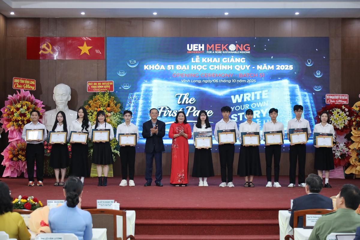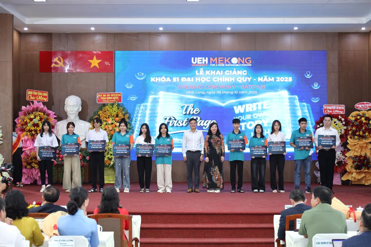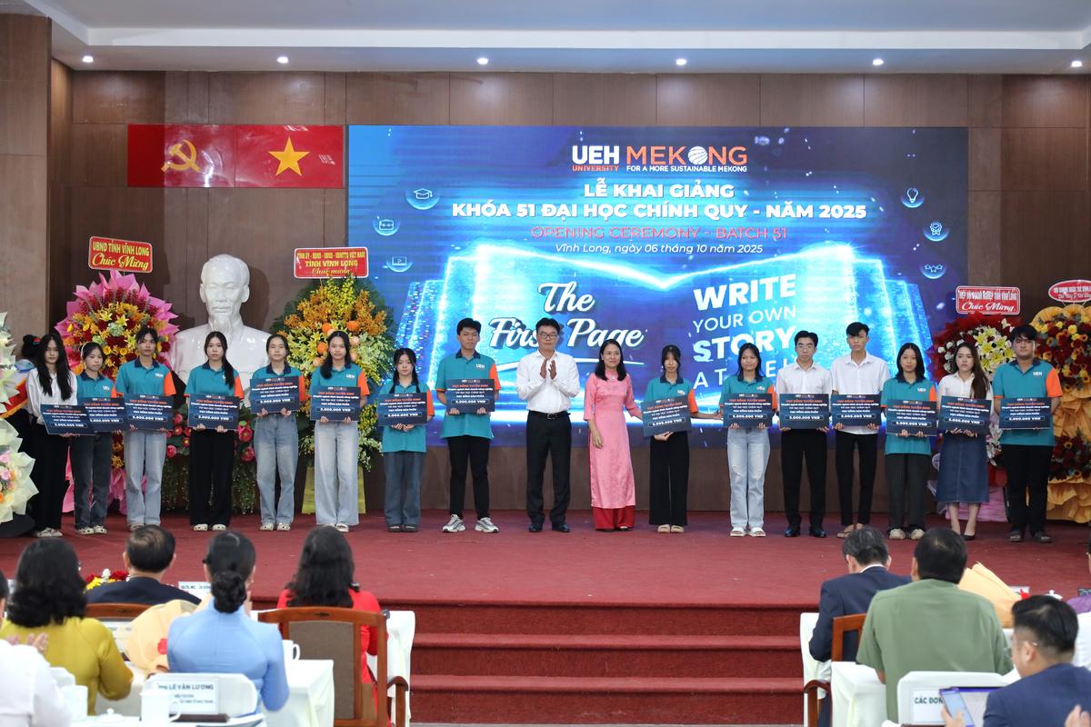Và trong năm nay, UEH Mekong đã trao 730 triệu đồng để khen thưởng Thủ khoa, Á khoa và trao học bổng tuyển sinh, học bổng hỗ trợ học tập cho các tân sinh viên của Khóa 51 - như một sự ghi nhận xứng đáng cho 12 năm nỗ lực bền bỉ, để hôm nay các bạn chính thức trở thành những UEHer đầy bản lĩnh.