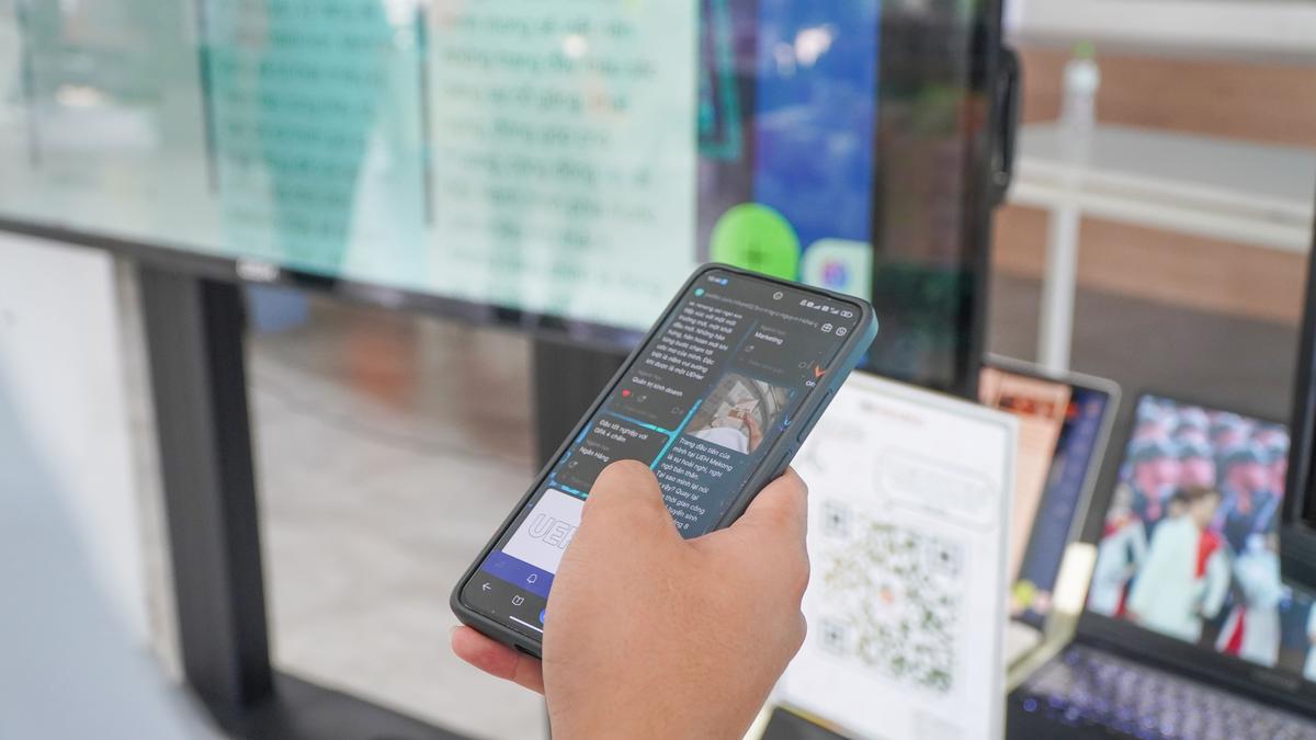 Sinh viên checkin và tham gia các hoạt động triển lãm tại sảnh B tại UEH Mekong