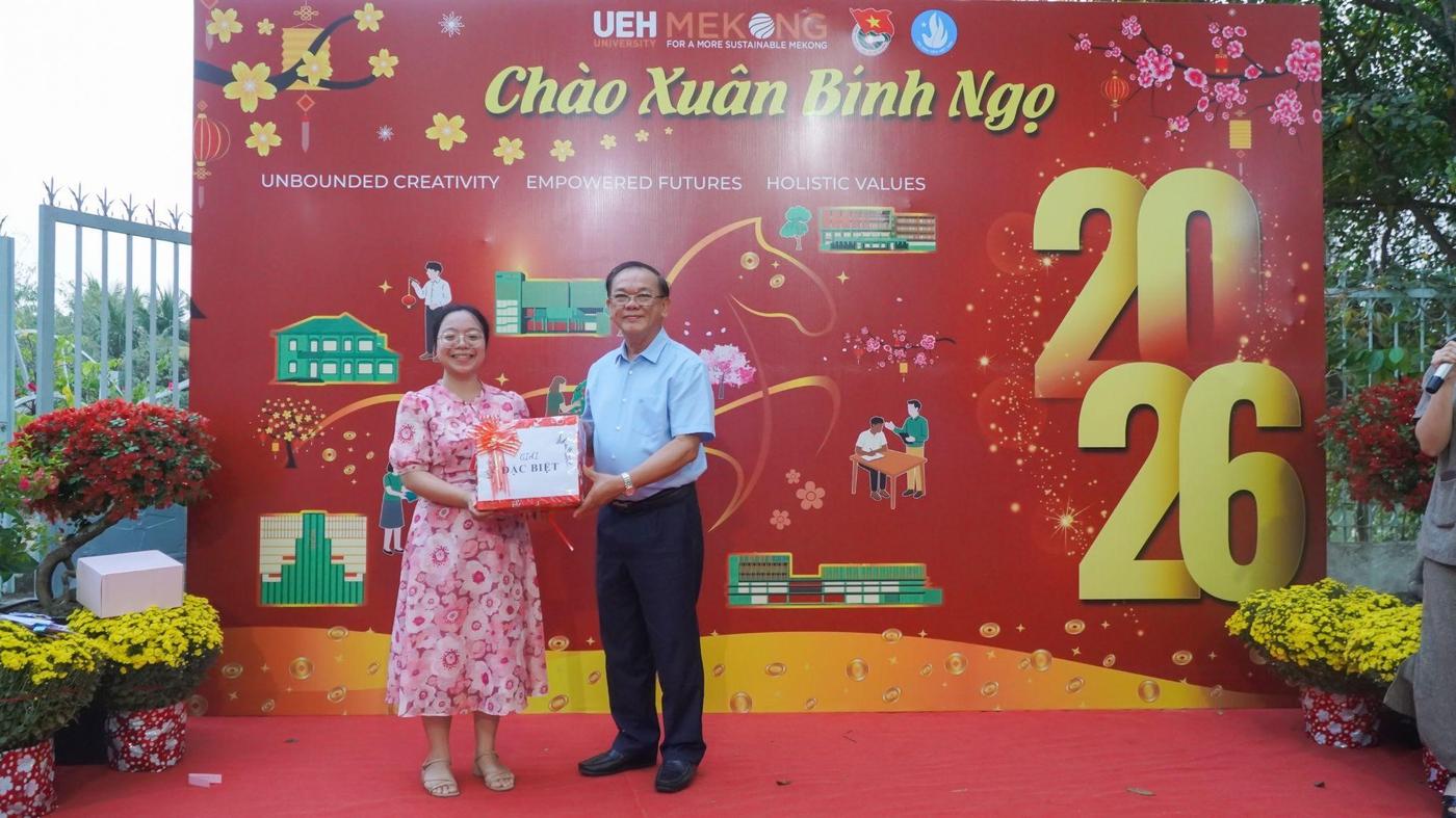 Trong hành trình phát triển của Đại học Kinh tế Thành phố Hồ Chí Minh (UEH), mỗi giai đoạn đều gắn với những quyết sách và bước chuyển mình quan trọng. Với UEH Mekong - Phân hiệu UEH tại Vĩnh Long, giai đoạn 2025 - 2026 không chỉ là dấu mốc tổng kết hơn 05 năm hình thành và phát triển, mà còn mở ra chu kỳ tăng tốc, khẳng định nội lực và vai trò trong chiến lược đa ngành, đổi mới sáng tạo và phát triển bền vững của toàn UEH. Xuân Bính Ngọ 2026 vì vậy mang ý nghĩa đặc biệt khi UEH Mekong được ghi nhận từ sự đồng hành và niềm tin của Lãnh đạo tỉnh cùng Lãnh đạo, Nguyên Lãnh đạo UEH gửi trao, đồng thời nhấn mạnh trách nhiệm của UEH Mekong trong việc gắn kết chiến lược đại học với chiến lược phát triển vùng.