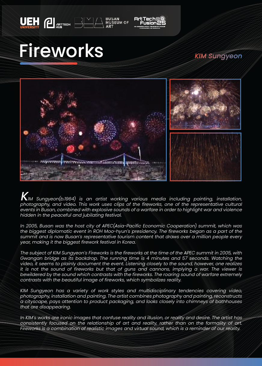 “Fireworks” thuộc 07 video nghệ thuật từ Bảo tàng Nghệ thuật Busan (Hàn Quốc) đưa người xem vào hành trình thị giác hòa quyện giữa thiên nhiên và công nghệ
