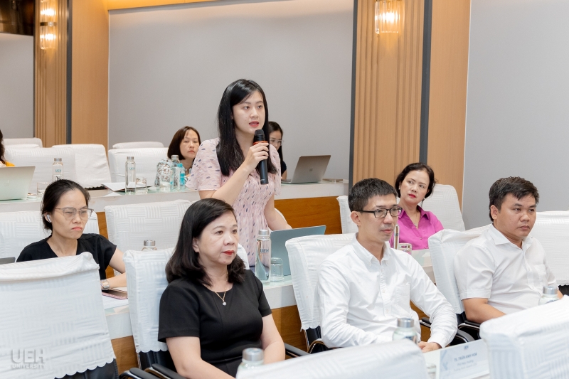 GS.TS. Nguyễn Đông Phong - Chủ tịch Hội đồng UEH nhiệm kỳ 2020-2025, Trưởng ban Chỉ đạo - Cố vấn; GS.TS. Sử Đình Thành - Giám đốc UEH, Thành viên ban Chỉ đạo - Cố vấn; TS. Đinh Công Khải - Phó Giám đốc UEH, Thành viên ban Chỉ đạo - Cố vấn, Trưởng ban Điều hành cùng tham gia trao đổi, chia sẻ và lắng nghe ý kiến từ các đơn vị báo chí, doanh nghiệp và khách mời