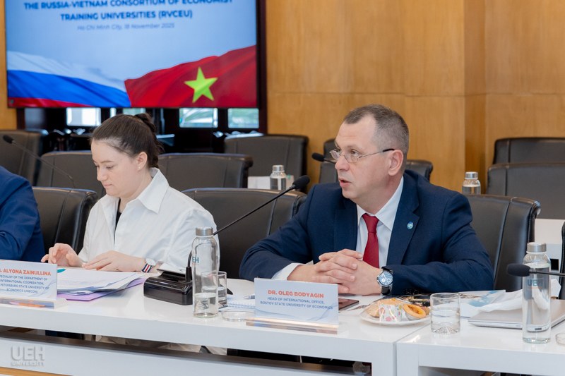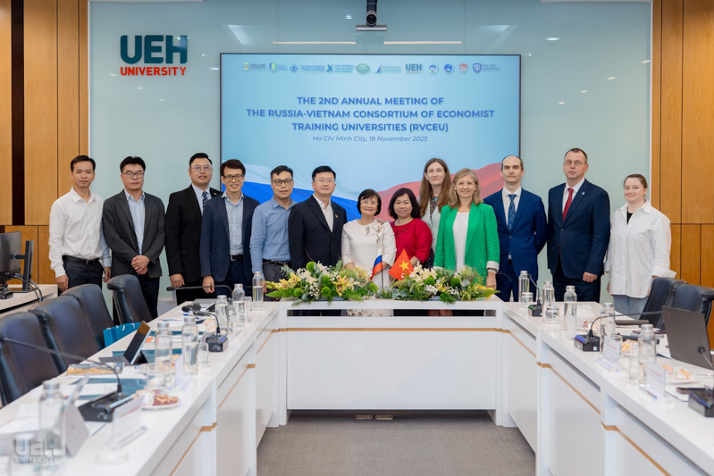 Ngày 18/11/2025, tại Phòng A205 - Cơ sở A, Đại học Kinh tế Thành phố Hồ Chí Minh (UEH) đã tổ chức Phiên họp thường niên lần thứ 2 của Hiệp hội các Trường Đại học Kinh tế Việt - Nga (RVCEU). Phiên họp nhằm tăng cường hợp tác học thuật, đánh giá tiến độ các dự án đang triển khai và xây dựng khung hợp tác giai đoạn mới giữa các trường thành viên Hiệp hội.