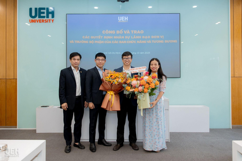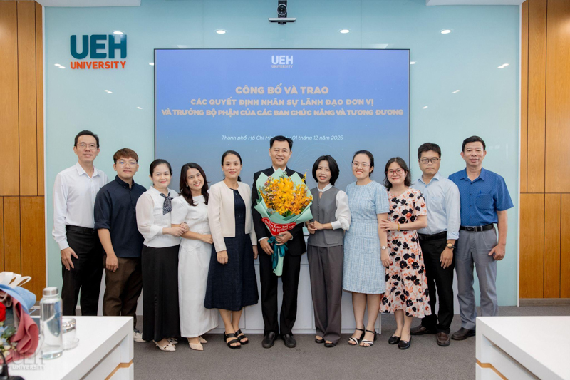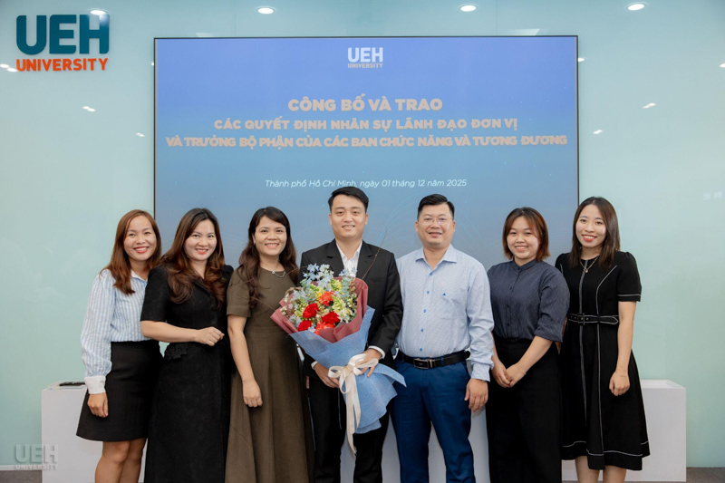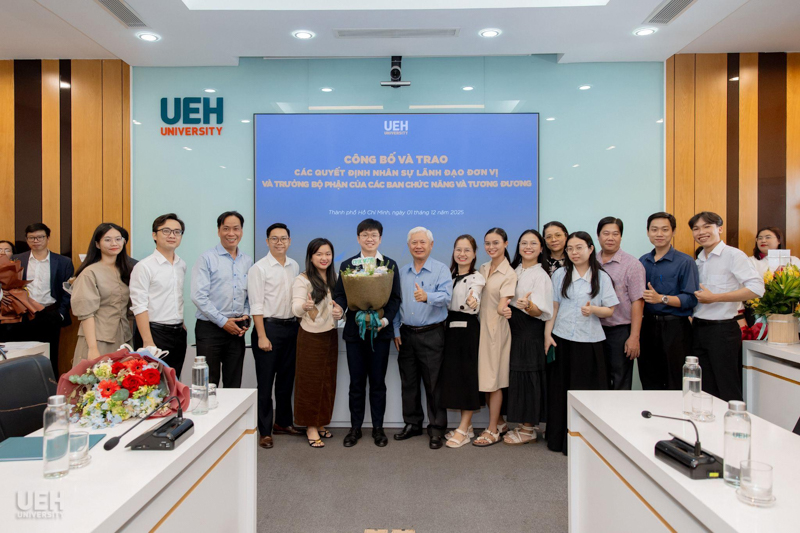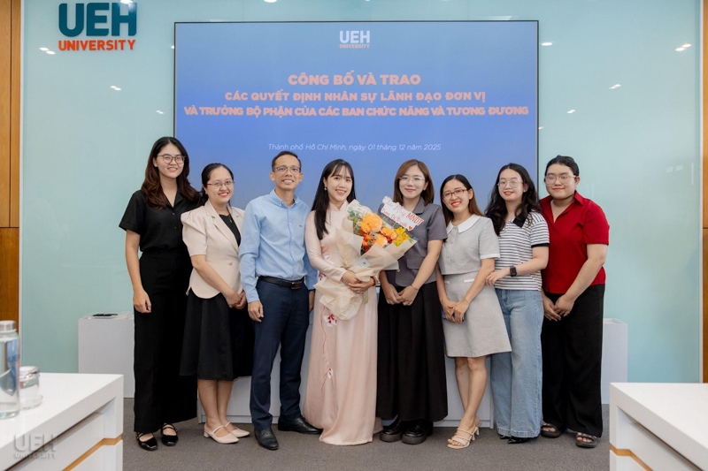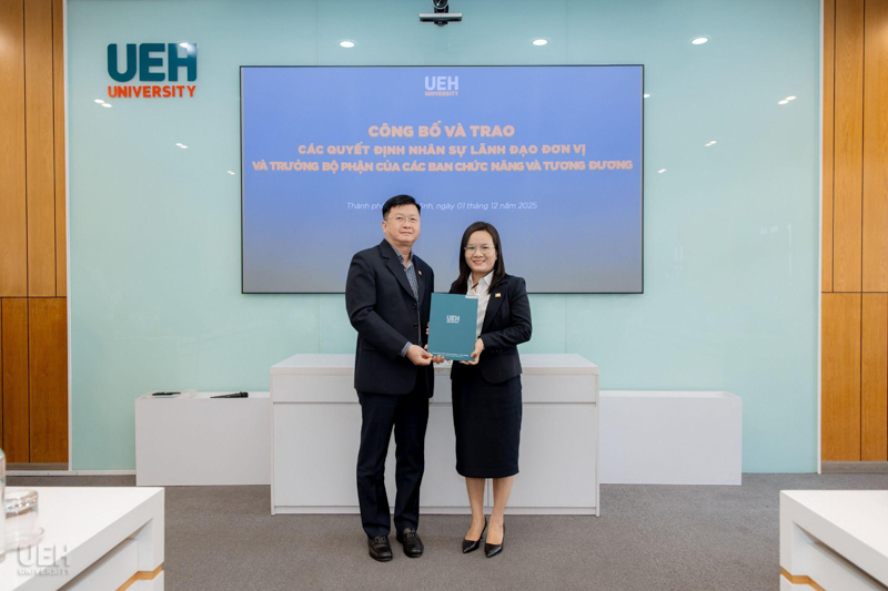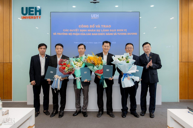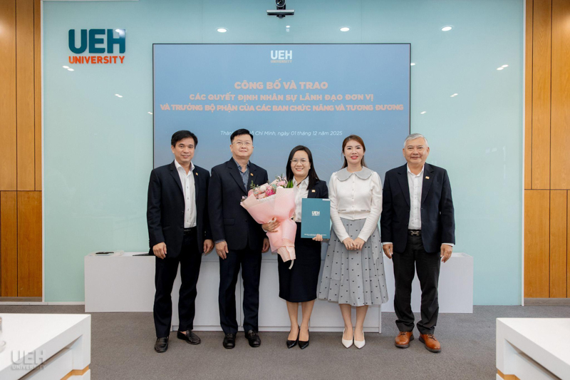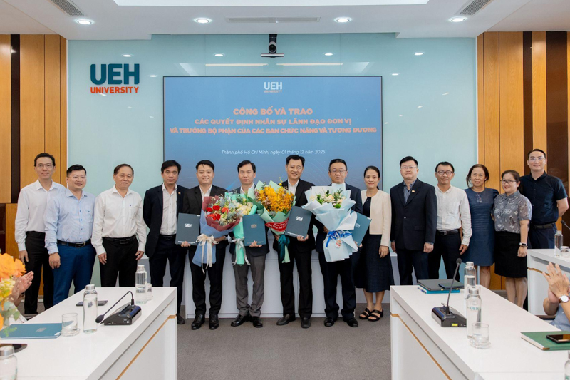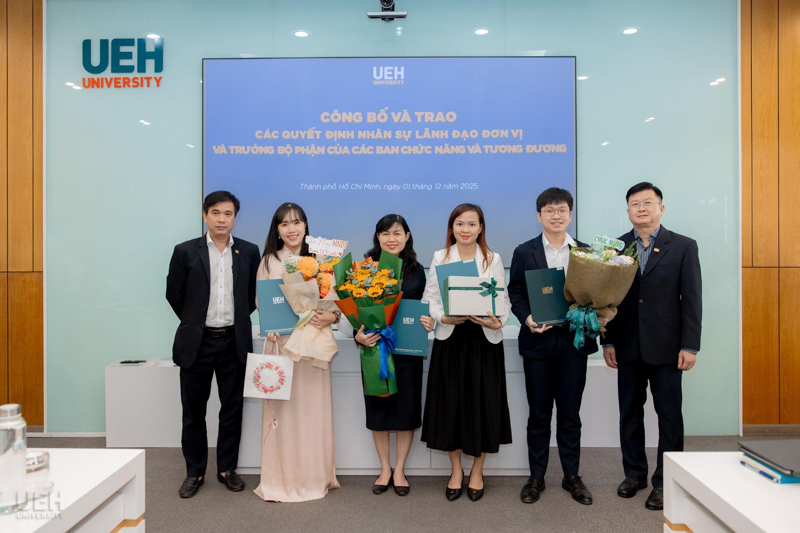 UEH đã trao các thông báo giao nhiệm vụ, quyết định bổ nhiệm đối với những vị trí: vị trí chuyên môn tương đương Phó Trưởng khoa Kinh tế, Trường Kinh tế, Luật và Quản lý nhà nước UEH; Phó Trưởng ban Bảo đảm chất lượng và Kiểm soát nội bộ; Viện trưởng và Phó Viện trưởng Viện Ngôn ngữ - Quốc tế học; cùng 08 Trưởng bộ phận thuộc các ban chức năng và tương đương.