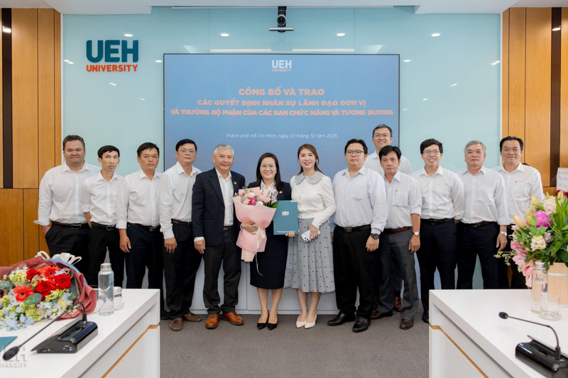 Sáng ngày 01/12/2025, Đại học Kinh tế Thành phố Hồ Chí Minh (UEH) tổ chức Công bố và trao các Quyết định nhân sự lãnh đạo đơn vị và trưởng bộ phận của các ban chức năng và tương đương.