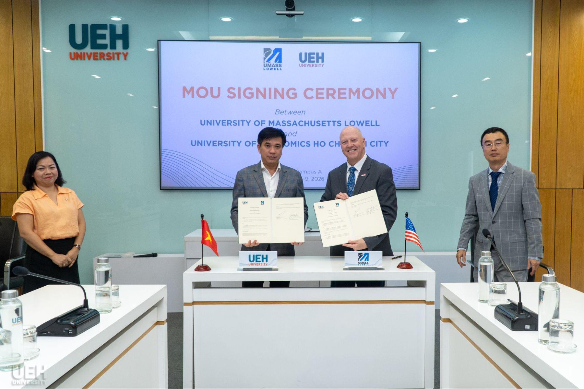 Ngày 09/02/2026, Đại học Kinh tế Thành phố Hồ Chí Minh (UEH) và Đại học Massachusetts Lowell (UMass Lowell, Hoa Kỳ) đã chính thức ký kết Biên bản ghi nhớ hợp tác (MOU), đánh dấu bước phát triển mới trong chiến lược mở rộng mạng lưới đối tác quốc tế và thúc đẩy hợp tác học thuật toàn diện giữa hai cơ sở giáo dục.