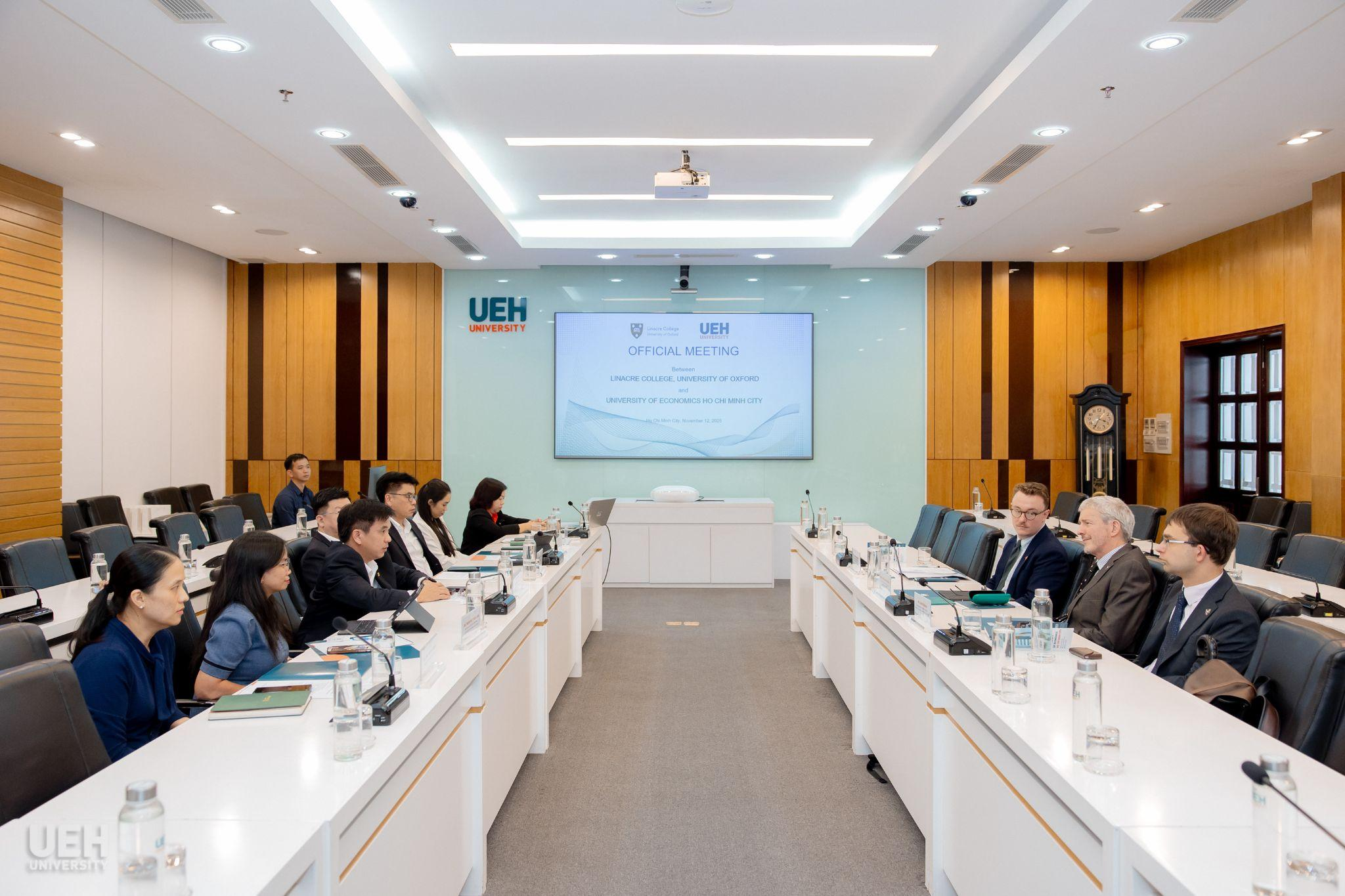 Trong bối cảnh hợp tác giáo dục Việt Nam – Vương quốc Anh đang được thúc đẩy mạnh mẽ sau khi nâng cấp quan hệ lên Đối tác Chiến lược toàn diện, Đại học Kinh tế Thành phố Hồ Chí Minh (UEH) đã có buổi tiếp đón và làm việc với Trường Linacre – Đại học Oxford nhằm mở rộng cơ hội hợp tác học thuật, nghiên cứu và trao đổi tri thức giữa hai bên.