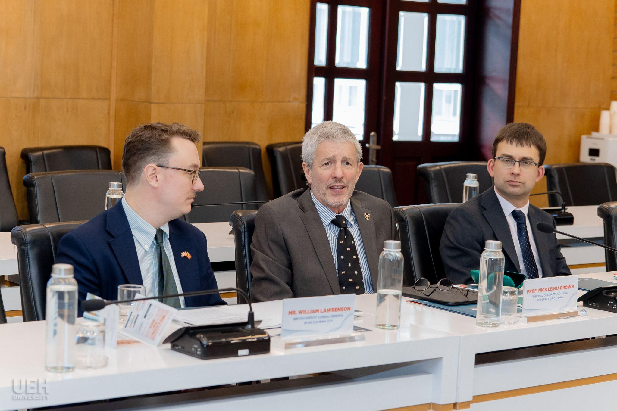 Đại diện Linacre College, GS. Nick Leimu-Brown - Hiệu trưởng Trường Linacre, Đại học Oxford cho biết: “Chúng tôi rất ấn tượng với sự phát triển năng động của UEH và định hướng quốc tế hóa mạnh mẽ. Linacre mong muốn hợp tác chặt chẽ cùng UEH trong đào tạo sau đại học, trao đổi nghiên cứu, cùng tham gia các dự án nghiên cứu, cũng như đồng tổ chức các hoạt động học thuật và văn hóa.”