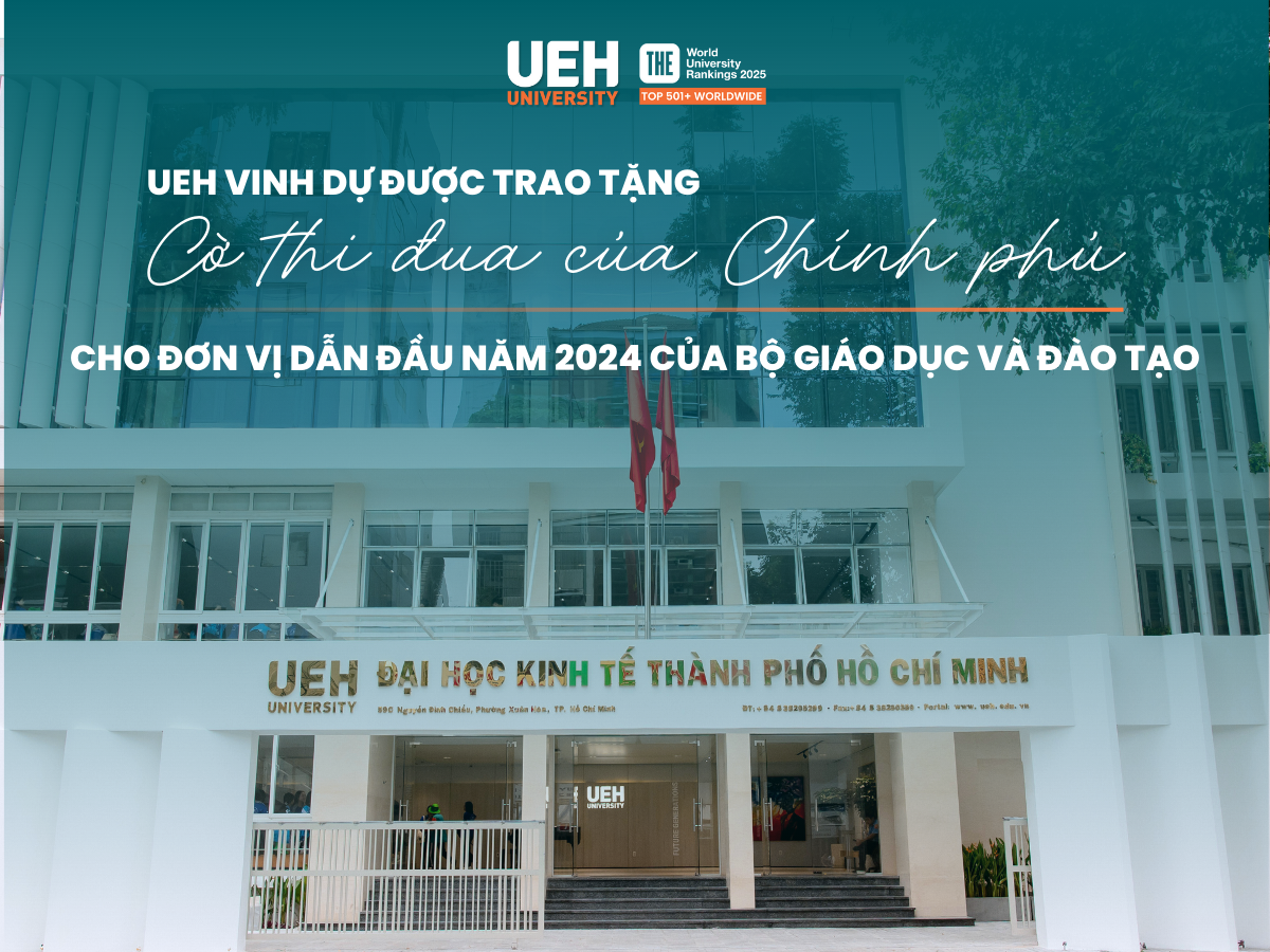 Ngày 22/8/2025, Đại học Kinh tế Thành phố Hồ Chí Minh (UEH) vinh dự đón nhận Cờ thi đua của Chính phủ theo Quyết định số 1802/QĐ-TTg cho tập thể hoàn thành xuất sắc nhiệm vụ công tác, dẫn đầu phong trào thi đua năm 2024 của Bộ Giáo dục và Đào tạo. Đây là phần thưởng cao quý, đánh dấu sự nỗ lực bền bỉ và những bước tiến vượt bậc của UEH trên hành trình đổi mới, hội nhập và phát triển bền vững, đồng thời khẳng định vị thế tiên phong của UEH trong hệ thống giáo dục đại học Việt Nam.