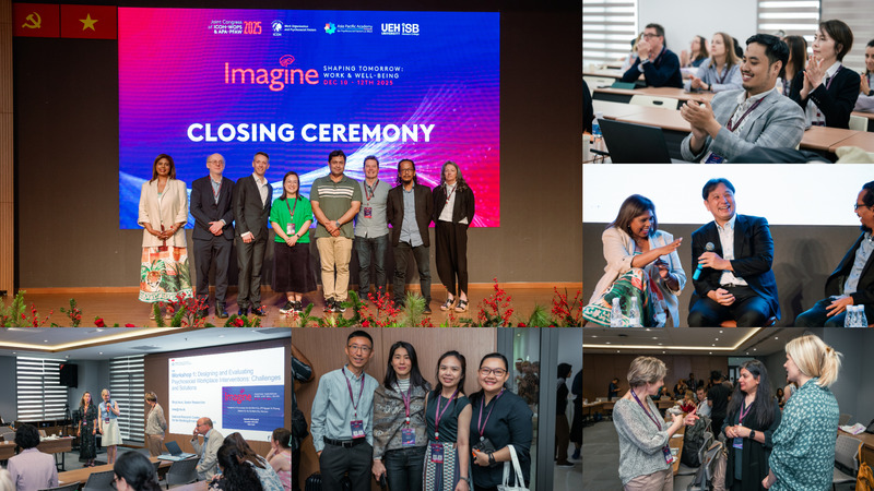 On December 12, 2025, the 2nd Joint Congress of ICOH-WOPS & APA-PFAW 2025, themed "IMAGINE! Shaping Tomorrow: Work and Well-Being," hosted by the UEH Honours College.ISB, concluded with numerous academic highlights and in-depth dialogues. The event contributed to shaping a vision for the future of work, where workplace happiness is recognized as a crucial goal of modern society.