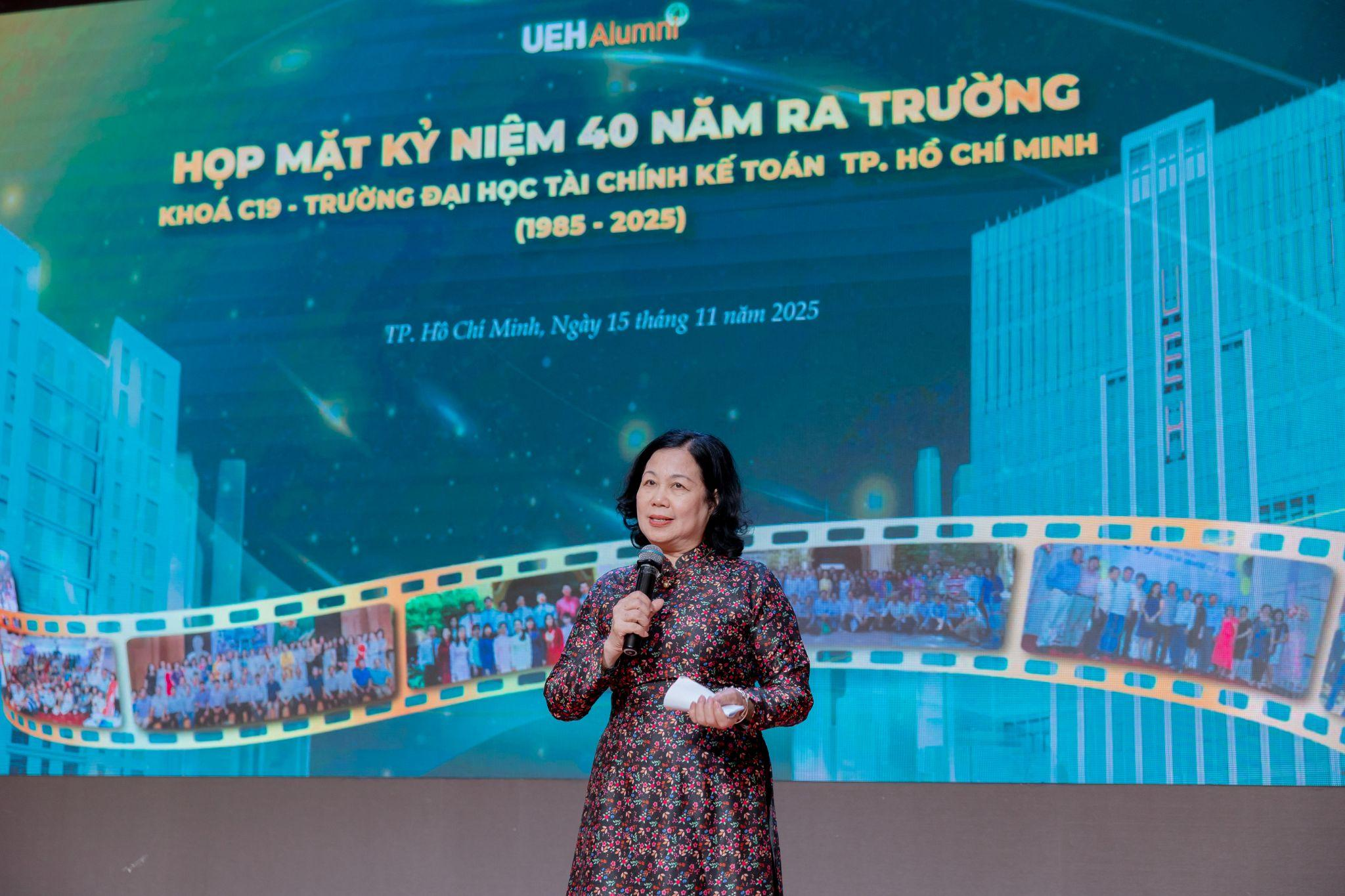 In a solemn yet heartfelt atmosphere, Assoc. Prof. Dr. Phan Thi Bich Nguyet – Chairwoman of UEH Alumni and also a member of Intake C19 – delivered a speech, expressing deep gratitude to her teachers and her beloved alma mater: