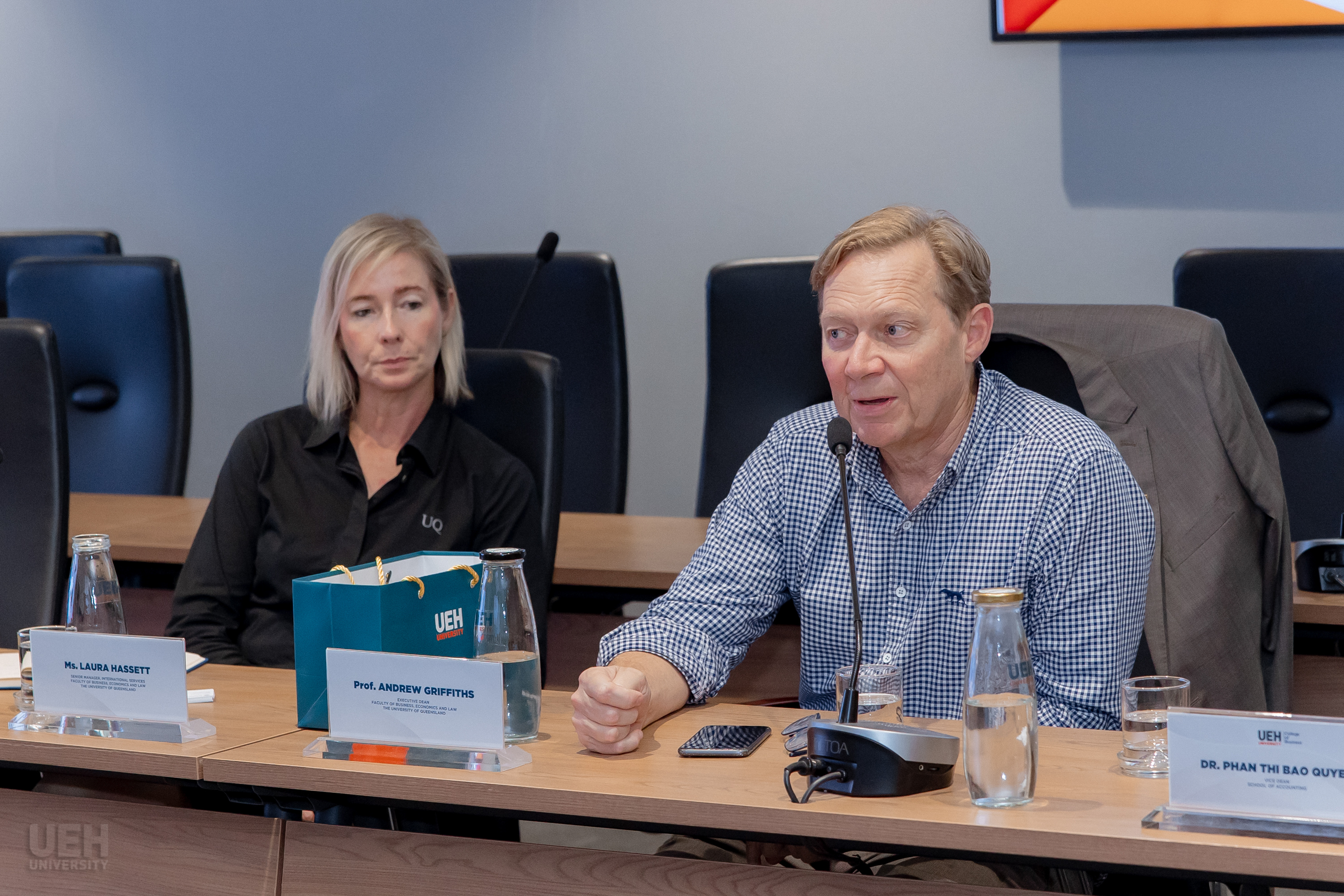 Following the Executive Lecture, the leadership of the UEH College of Business held a working session with the delegation from The University of Queensland to discuss potential directions for collaboration in education and research.