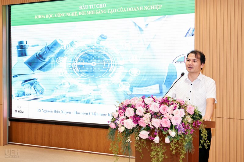 TS. Nguyễn Hữu Xuyên trình bày nội dung “Thực trạng đầu tư cho khoa học công nghệ, đổi mới sáng tạo của các doanh nghiệp Việt Nam trong bối cảnh chuyển đổi số và hàm ý chính sách”