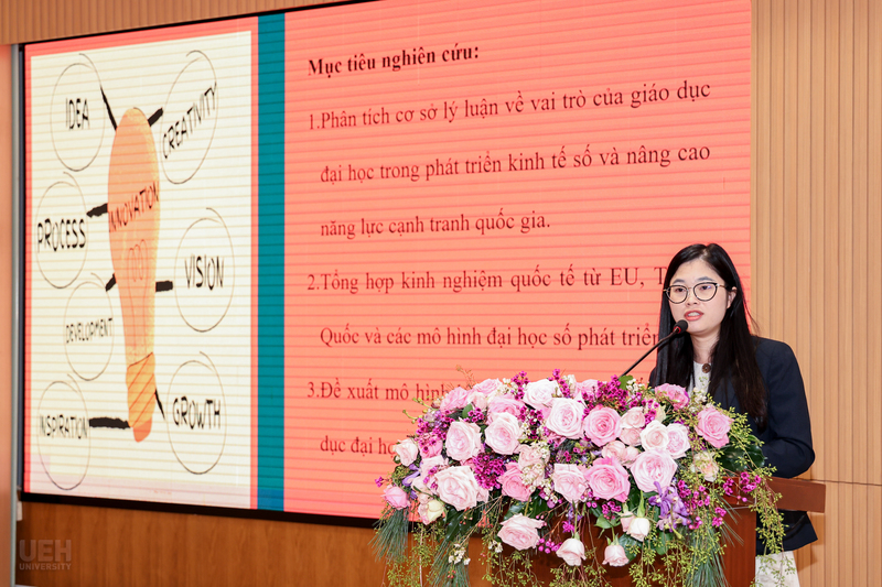 TS. Đỗ Thị Hải Ninh - Giám đốc Chương trình đào tạo Marketing trình độ Đại học, Khoa Kinh doanh quốc tế - Marketing UEH trình bày tham luận: “Vai trò của cơ sở giáo dục đại học trong phát triển kinh tế số nhằm nâng cao năng lực cạnh tranh quốc gia: Kinh nghiệm quốc tế và bài học áp dụng tại UEH”