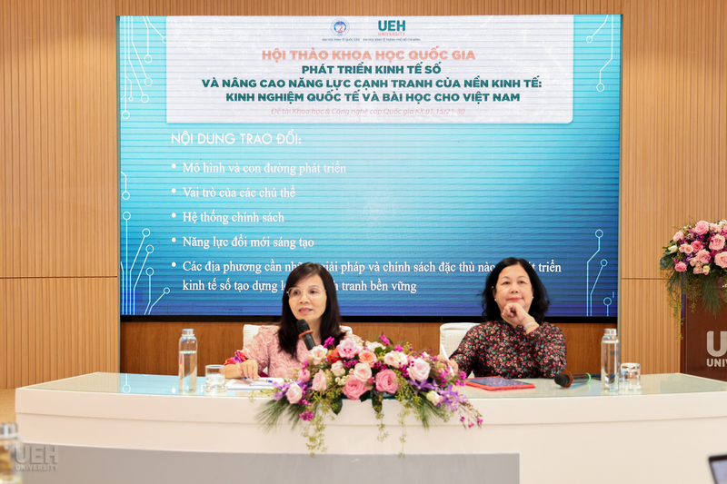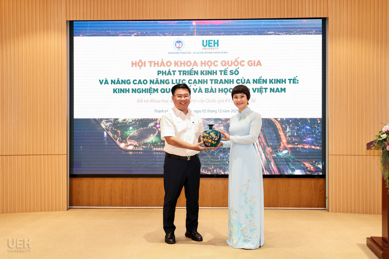 Ngày 02/12/2025, Đại học Kinh tế Thành phố Hồ Chí Minh (UEH) phối hợp cùng Đại học Kinh tế Quốc dân (NEU) tổ chức chuỗi Hội thảo Khoa học Quốc gia, hướng tới xây dựng diễn đàn học thuật nhằm trao đổi, thảo luận và đề xuất các kiến nghị thực tiễn nâng cao năng lực cạnh tranh của đất nước trong thời đại mới. Trong đó, hội thảo đầu tiên với chủ đề “Phát triển kinh tế số và nâng cao năng lực cạnh tranh của nền kinh tế: Kinh nghiệm quốc tế và bài học cho Việt Nam” đã ghi nhận nhiều tham luận chuyên sâu, đóng góp hàm ý chính sách thúc đẩy kinh tế số và đổi mới sáng tạo của doanh nghiệp Việt Nam trong thời kỳ chuyển đổi số mạnh mẽ.