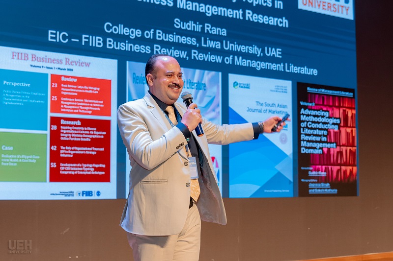 PGS.TS. Sudhir Rana đã mang đến một khung tham chiếu toàn diện về các lý thuyết kinh doanh cốt lõi và xu hướng nghiên cứu hiện đại. Ông nhấn mạnh rằng trong bối cảnh quản trị kinh doanh liên tục thay đổi, các nhà nghiên cứu cần tập trung vào ba mục tiêu: phát triển tri thức học thuật, cân bằng giữa tính thực tiễn và phương pháp khoa học, và tạo ra tác động rõ ràng cho cộng đồng nghiên cứu lẫn thực tiễn quản trị. Từ góc nhìn của một tổng biên tập các tạp chí uy tín, diễn giả cũng chia sẻ những chủ đề đang thu hút sự quan tâm như hành vi lệch chuẩn trong kinh doanh, surrogate gambling, tương tác người – máy, robot như bạn đồng hành và các nhóm yếu thế trong kinh doanh. Những gợi mở này giúp học giả định hình chủ đề và khung lý thuyết phù hợp, thúc đẩy các nghiên cứu vừa mang tính thời sự vừa có tính ứng dụng cao.