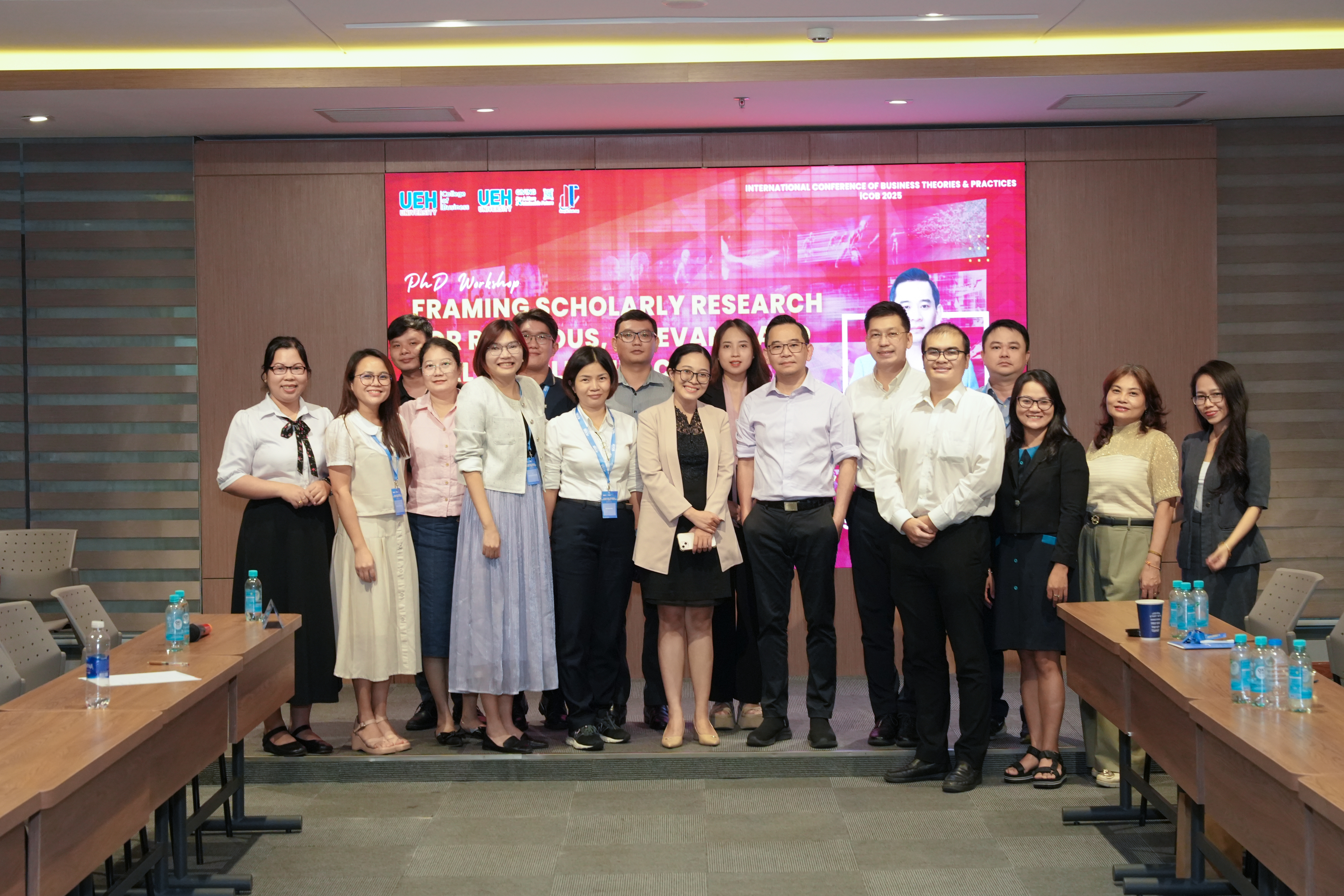 PGS.TS. Ngô Viết Liêm cùng với Nghiên cứu sinh UEH và tác giả tại buổi PhD Workshop