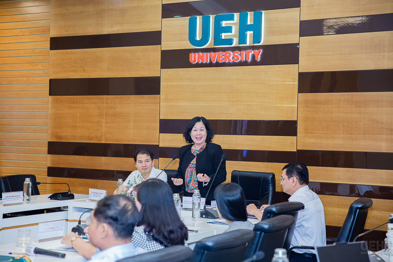 PGS.TS. Phan Thị Bích Nguyệt - Chủ tịch Hội đồng Tư vấn chiến lược và chính sách UEH phát biểu tại buổi Tọa đàm