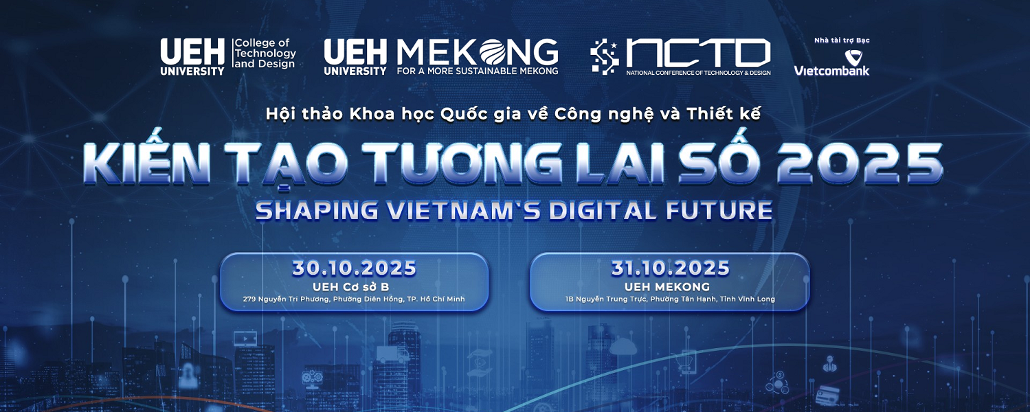 Hội thảo Khoa học Quốc gia về Công nghệ và Thiết kế là một sự kiện quan trọng được tổ chức định kỳ 02 năm một lần do Trường Công nghệ và Thiết kế UEH (CTD) đăng cai tổ chức. Với chủ đề “Kiến tạo tương lai số” (Shaping Vietnam’s Digital Future) năm 2025, UEH tiếp tục phối hợp với các trường đại học uy tín, danh tiếng trong và ngoài nước tổ chức Hội thảo Khoa học Quốc gia về Công nghệ và Thiết kế nhằm mục tiêu tìm kiếm các giải pháp, công nghệ và chính sách phù hợp để thực hiện Chiến lược quốc gia về nghiên cứu, phát triển và ứng dụng Công nghệ số đến năm 2030 theo Quyết định 127/QĐ-TTg của Thủ tướng Chính phủ ngày 26 tháng 01 năm 2021 về việc ban hành Chiến lược quốc gia về nghiên cứu, phát triển và ứng dụng Trí tuệ nhân tạo đến năm 2030.