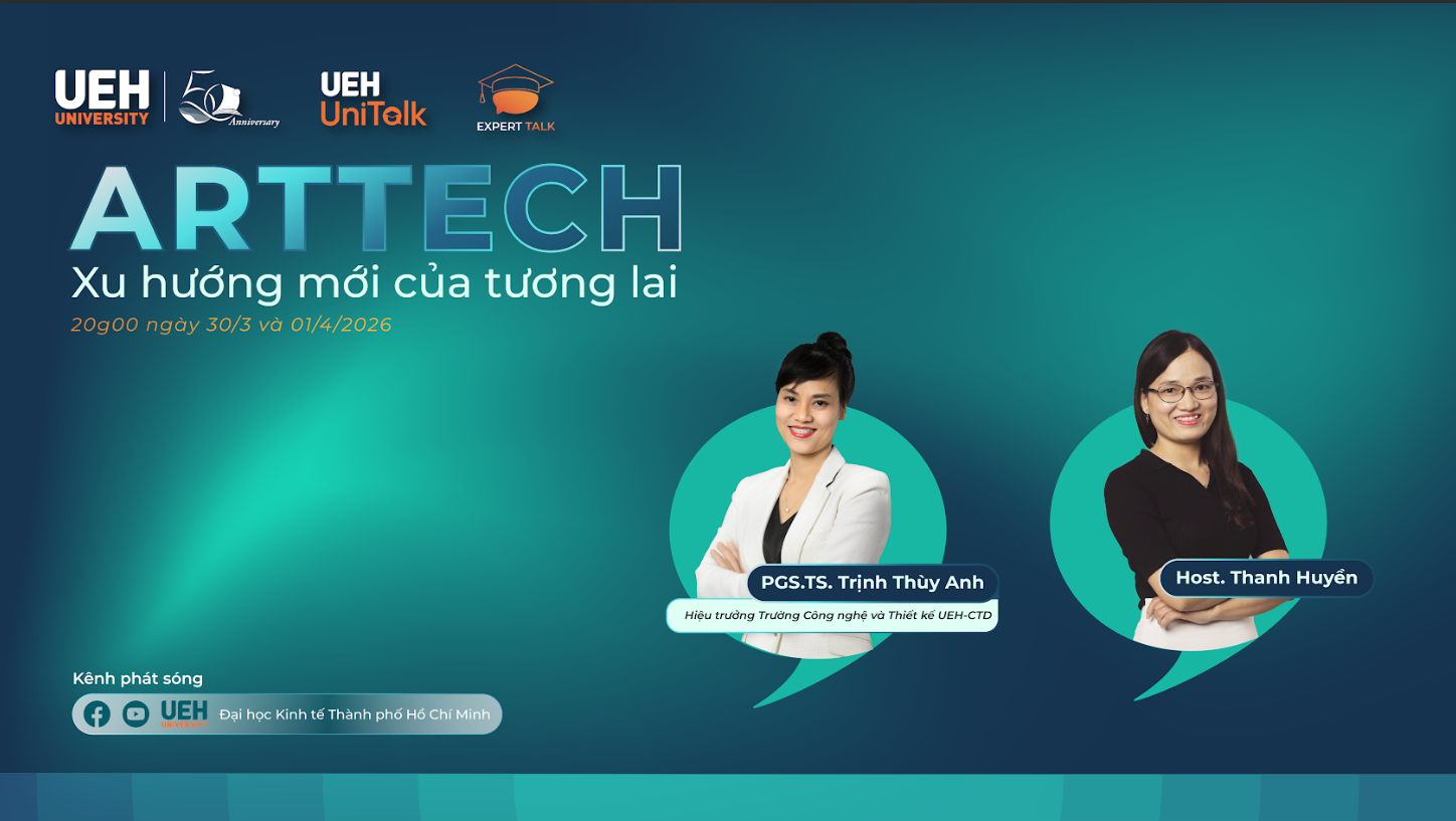 Cùng lý giải những sự thật thú vị xoay quanh từ khóa “ArtTech” ngay lúc này với những chia sẻ từ PGS.TS. Trịnh Thùy Anh - Hiệu trưởng Trường Công nghệ và Thiết kế UEH sẽ được LIVESTREAM trên hệ thống kênh truyền thông chính thức của UEH.