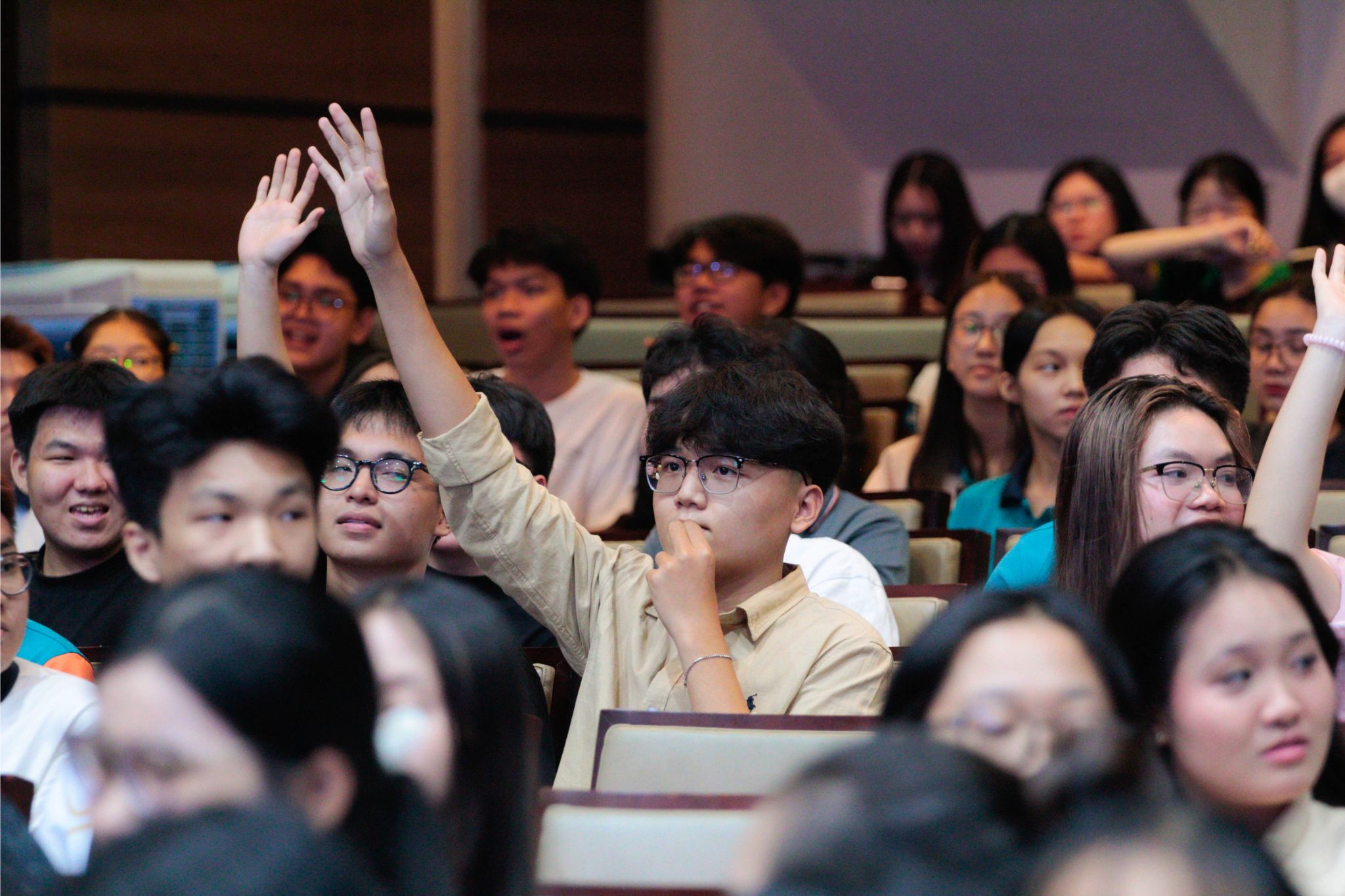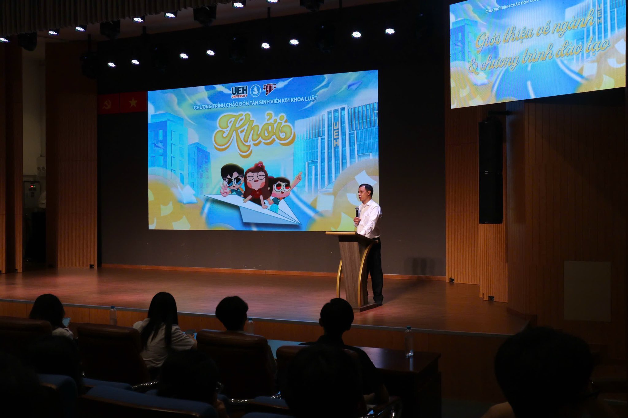 Sự kiện đón chào 200 tân sinh viên K51 của Khoa Luật với chủ đề KHỞI trong ngày 17/9/2025 vừa qua đã khép lại với nhiều thành công và kỷ niệm đẹp. Buổi lễ có sự tham dự của Ban Lãnh đạo Khoa, các giảng viên, và các thành viên Đoàn – Hội Khoa Luật. Trong không khí sôi nổi và tràn đầy sự hào hứng của tân sinh viên tại hội trường B1.302, TS. Dương Kim Thế Nguyên – Trưởng Khoa Luật đã chia sẻ về lịch sử hình thành nên Khoa Luật, đồng thời bày tỏ niềm tự hào đón chào một thế hệ mới, những người nối tiếp truyền thống vẻ vang của Khoa Luật. Sau đó, Giám đốc Chương trình Đào tạo Luật Kinh tế, TS. Trần Huỳnh Thanh Nghị chia sẻ thêm về chương trình đào tạo và cơ hội nghề nghiệp để đem lại cho sinh viên một cái nhìn toàn diện hơn về lĩnh vực luật học của mình. Chương trình KHỞI của Khoa Luật đánh dấu một trang sách mới cho các em Khóa 51, giúp các em tô sắc lên những trang giấy bằng sự đoàn kết, niềm tin học tập tốt, và khát vọng bước ra vùng an toàn để còn tiến xa hơn nữa trong tương lai.