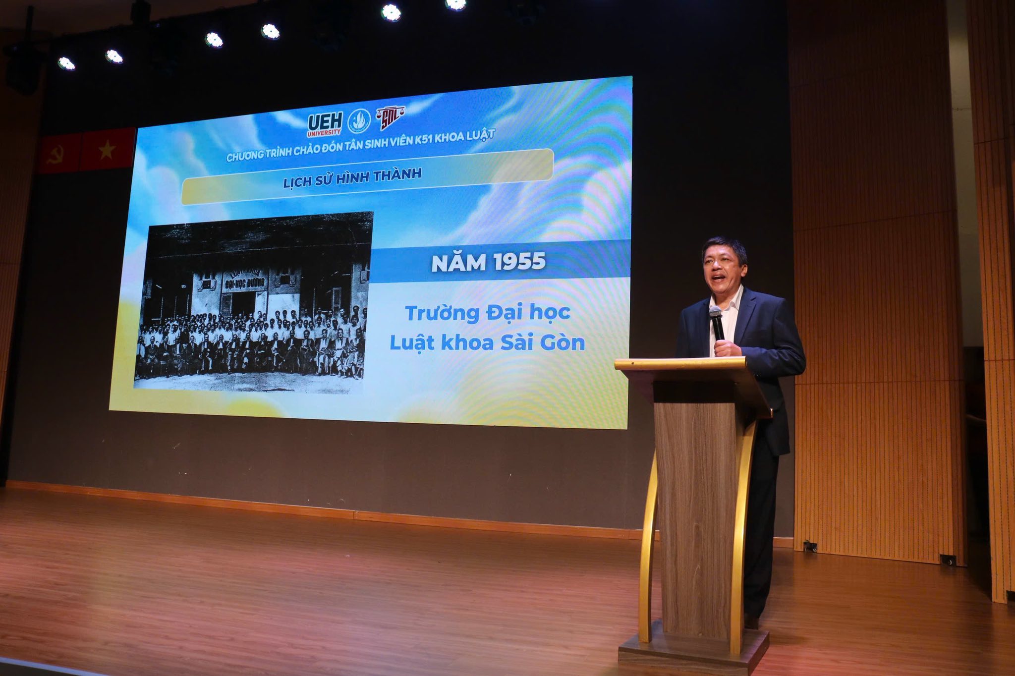 TS. Dương Kim Thế Nguyên – Trưởng Khoa Luật phát biểu khai mạc chương trình chào đón Tân sinh viên K51