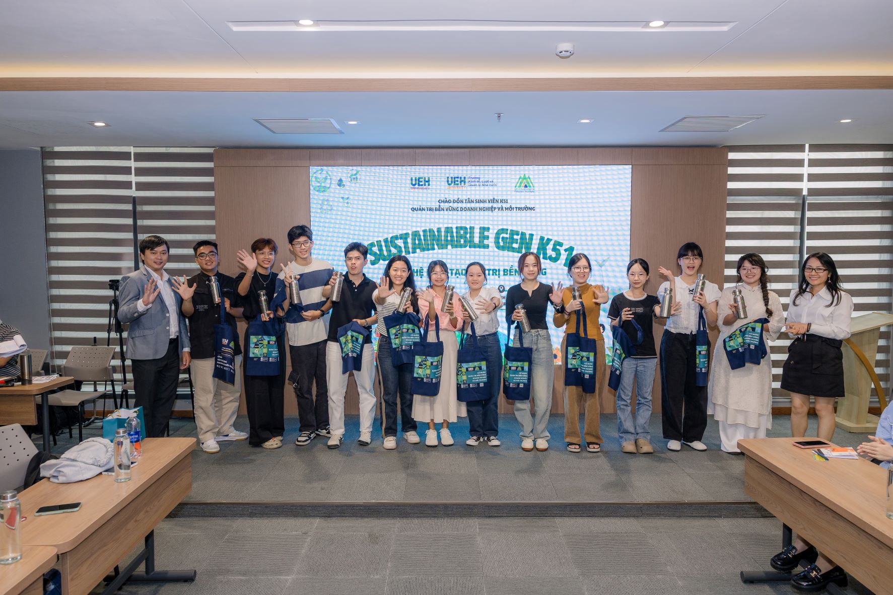 Viện Tài chính Bền Vững hào hứng đón chào các tân sinh viên theo học ngành Quản trị Bền vững Doanh nghiệp và Môi trường trong ngày 13/9/2025 vừa qua. Vì là ngành học tiên phong, UEH. PGS.TS Bùi Quang Hùng đã đặc biệt nhấn mạnh “bền vững” là yếu tố quan trọng trong chiến lược phát triển của ngành học đối với nhu cầu của xã hội. Tiếp đó, PGS.TS. Bùi Thị Mai Hoài, Viện trưởng Viện Tài chính Bền vững cũng nêu rõ và bày tỏ sự quan trọng của việc xác định được hướng đi rõ ràng của mình để giúp các bạn sinh viên phát triển được nghề nghiệp của mình sau này. Ngoài ra, các cựu sinh viên cũng chia sẻ kinh nghiệm học tập và thực tiễn của mình để giúp tân sinh viên hoạch định được hướng đi cụ thể của mình. Đặc biệt, các bạn sinh viên cũng được trao tặng bình nước refill tại buổi chào đón với thông điệp “Refill, Reuse, Recycle. One planet, one bottle at all time” để cùng nhau nâng cao ý thức bảo vệ môi trường.