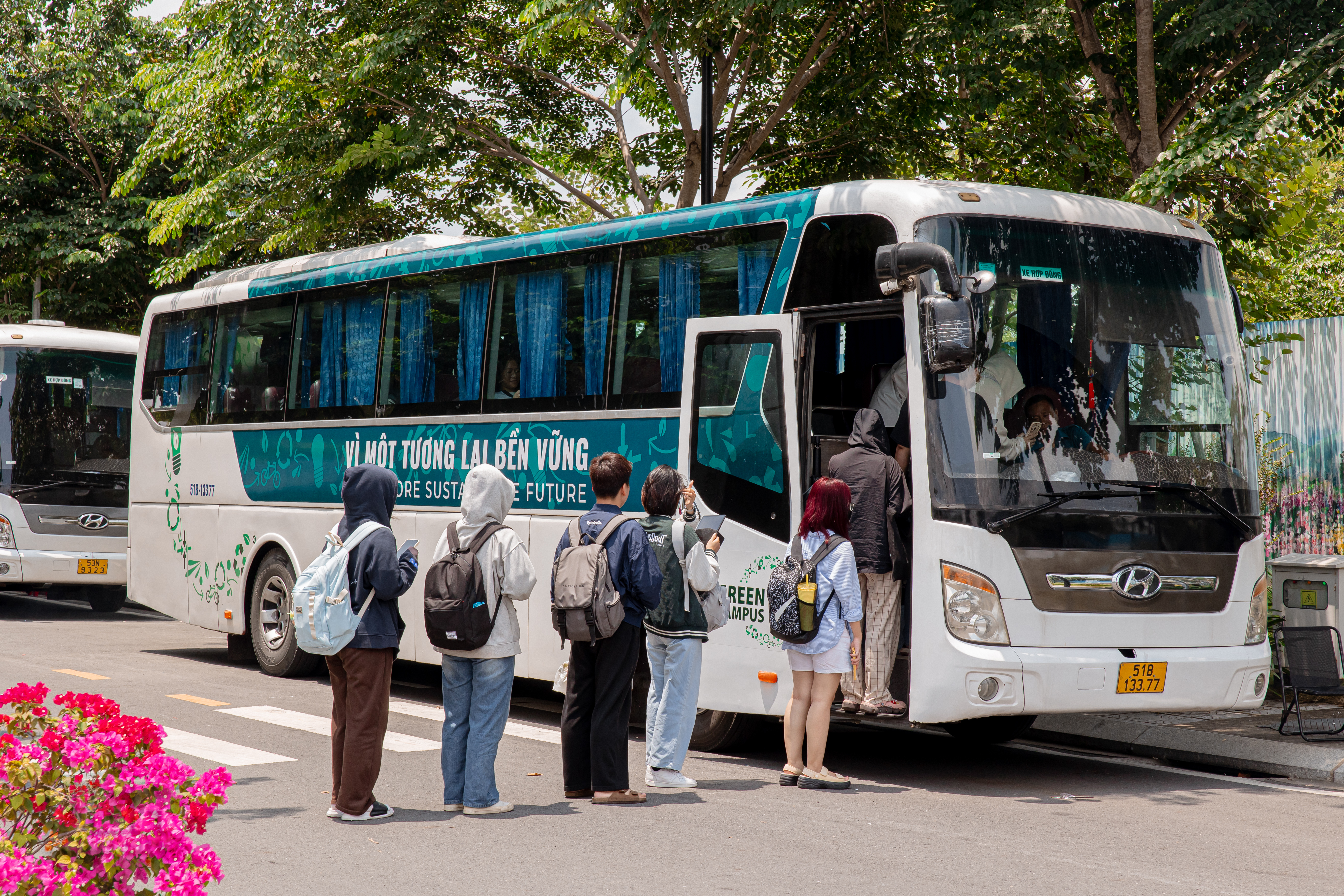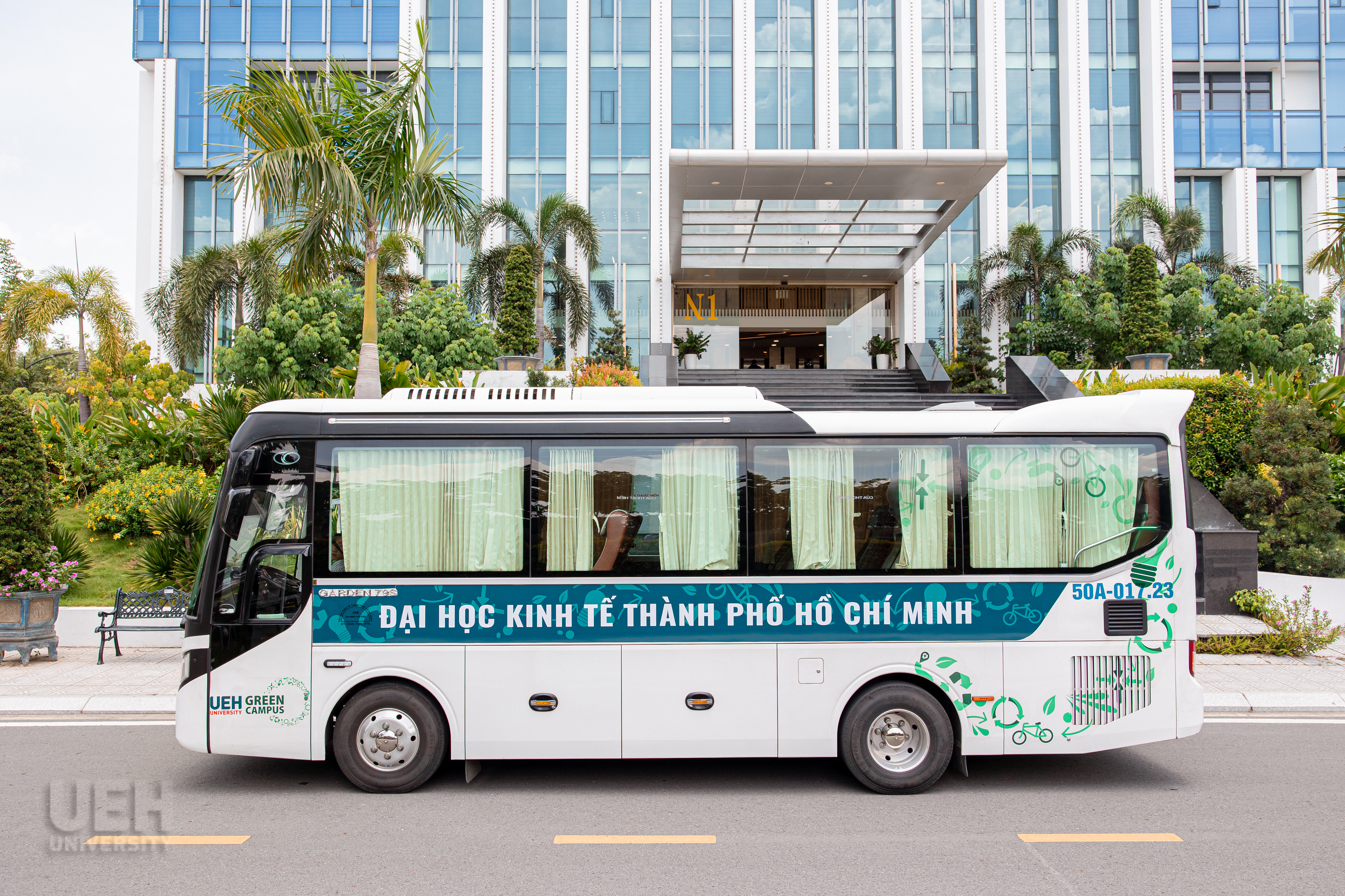 Hệ thống xe buýt thông minh UEH Shuttle Bus dành riêng cho viên chức và sinh viên UEH đã giúp việc di chuyển trong và ngoài khuôn viên trở nên thuận tiện, an toàn và thân thiện với môi trường, góp phần giảm phương tiện cá nhân và bảo vệ môi trường đô thị. Dịch vụ này sử dụng ứng dụng di động UEH Shuttle Bus để đặt vé, thanh toán và check-in, giúp người dùng chủ động lên kế hoạch di chuyển và tiết kiệm thời gian.