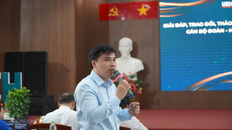 Đồng chí Nguyễn Trung Tiến - Bí thư Đoàn UEH Mekong giải đáp các ý kiến của cán bộ Đoàn - Hội, đoàn viên thanh niên