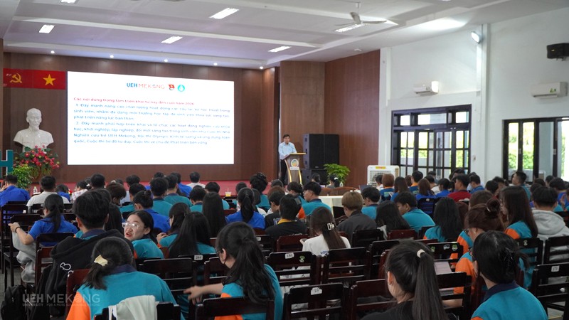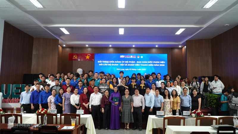 Ngày 01/4/2026, Ban Chấp hành Đoàn - Hội UEH Mekong đã tổ chức chương trình đối thoại giữa Đảng ủy bộ phận, Ban Giám đốc UEH Mekong với cán bộ Đoàn - Hội và đoàn viên thanh niên năm 2026 tại Hội trường A. Chương trình được tổ chức nhằm mục đích lắng nghe những ý kiến, nguyện vọng, đề xuất của cán bộ Đoàn - Hội, đoàn viên thanh niên để Đảng ủy bộ phận, Ban Giám đốc UEH Mekong cùng BCH Đoàn - Hội có những giải pháp hỗ trợ kịp thời, góp phần nâng cao chất lượng công tác Đoàn - Hội và công tác sinh viên tại UEH Mekong.