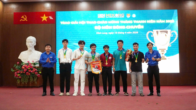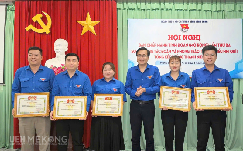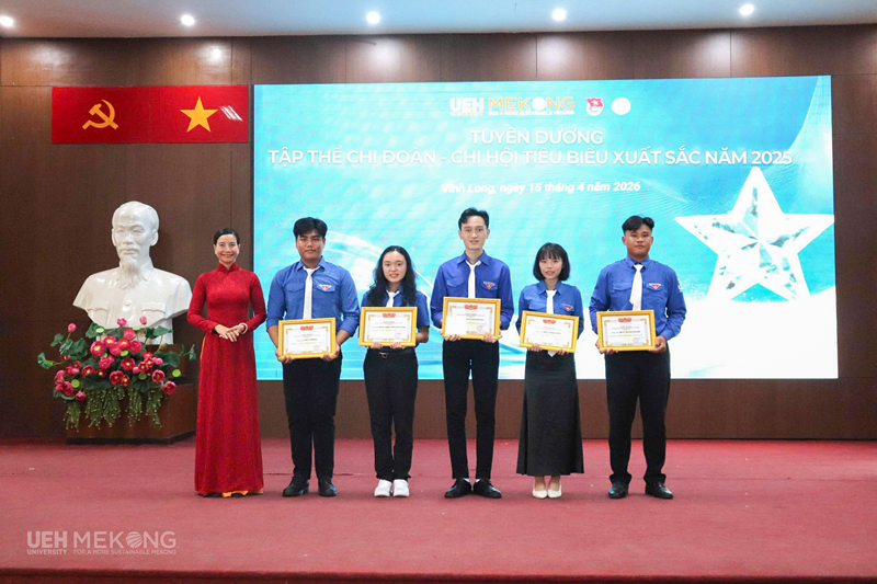 Với những kết quả nổi bật trong Tháng Thanh niên năm 2026, tại Hội nghị tổng kết Tháng Thanh niên năm 2026 của Tỉnh Đoàn Vĩnh Long tổ chức ngày 17/4/2026, Đoàn Phân hiệu Đại học Kinh tế Thành phố Hồ Chí Minh tại Vĩnh Long đã được tặng Giấy khen của Ban Chấp hành Tỉnh đoàn, với thành tích “Xuất sắc trong triển khai Tháng Thanh niên năm 2026”. Đây là thành quả xứng đáng cho những nỗ lực, sáng tạo của tuổi trẻ UEH Mekong.
