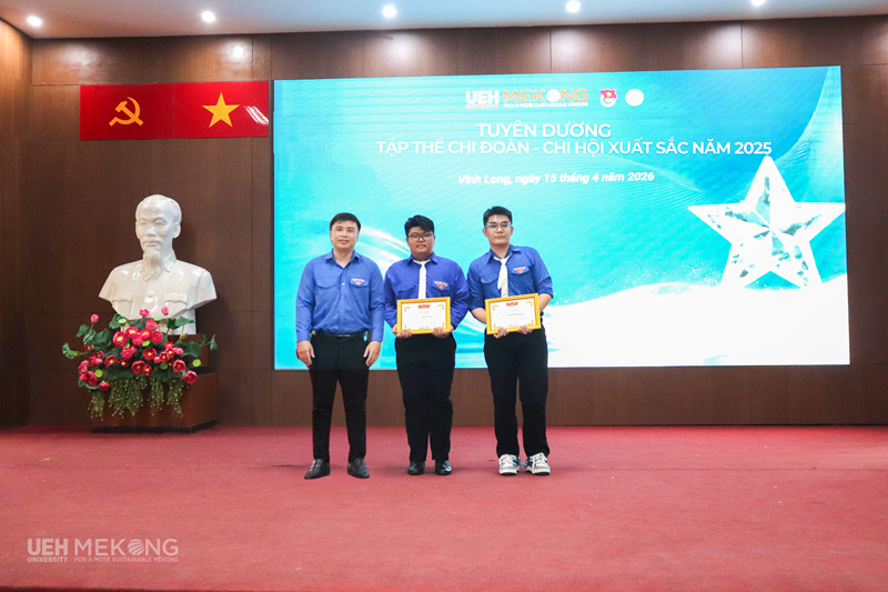 Trong năm 2025, với sự nỗ lực không ngừng, nhiều tập thể Chi đoàn - Chi hội và cán bộ Đoàn - Hội đã ghi dấu bằng những thành tích nổi bật, đóng góp tích cực vào sự phát triển mạnh mẽ của phong trào thanh niên tại UEH Mekong. Căn cứ trên các thành tích đạt được, Giám đốc UEH Mekong đã tặng Giấy khen 05 tập thể đạt danh hiệu “Tập thể Chi đoàn - Chi hội tiêu biểu xuất sắc” và 10 cá nhân đạt danh hiệu “Cán bộ Đoàn - Hội tiêu biểu xuất sắc”; Ban Chấp hành Đoàn UEH Mekong đã tặng Giấy khen cho 02 tập thể và 15 cá nhân được vinh danh với danh hiệu “Tập thể Chi đoàn - Chi hội xuất sắc” và “Cán bộ Đoàn - Hội xuất sắc”.