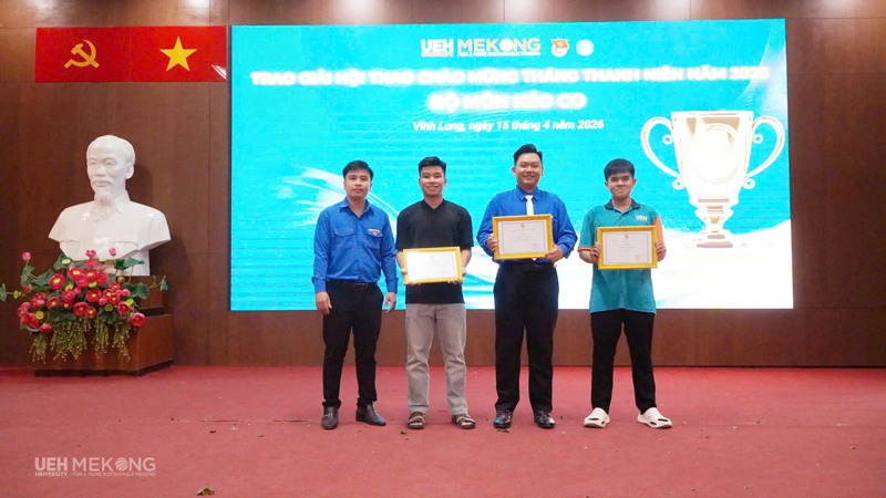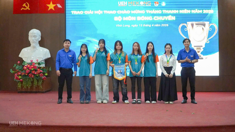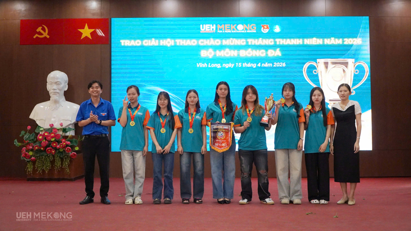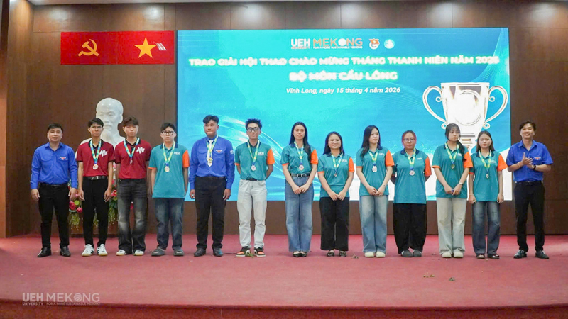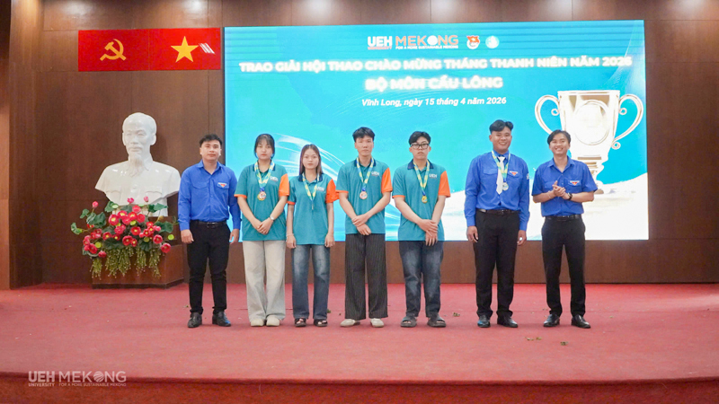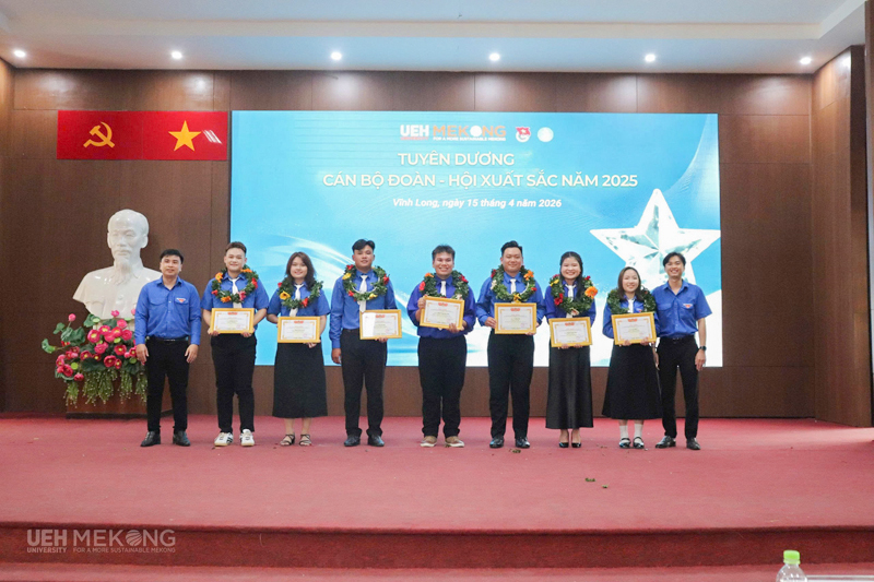 Ngày 15/4/2026, Đoàn - Hội UEH Mekong tổ chức Lễ tổng kết hoạt động Tháng Thanh niên 2026 và tuyên dương tập thể Chi đoàn - Chi hội, cán bộ Đoàn - Hội xuất sắc năm 2025; giới thiệu nhân sự Ban chuyên môn thuộc Đoàn, Ban chủ nhiệm CLB và Hội đồng Quản trị Hợp tác xã Sinh viên năm 2026.