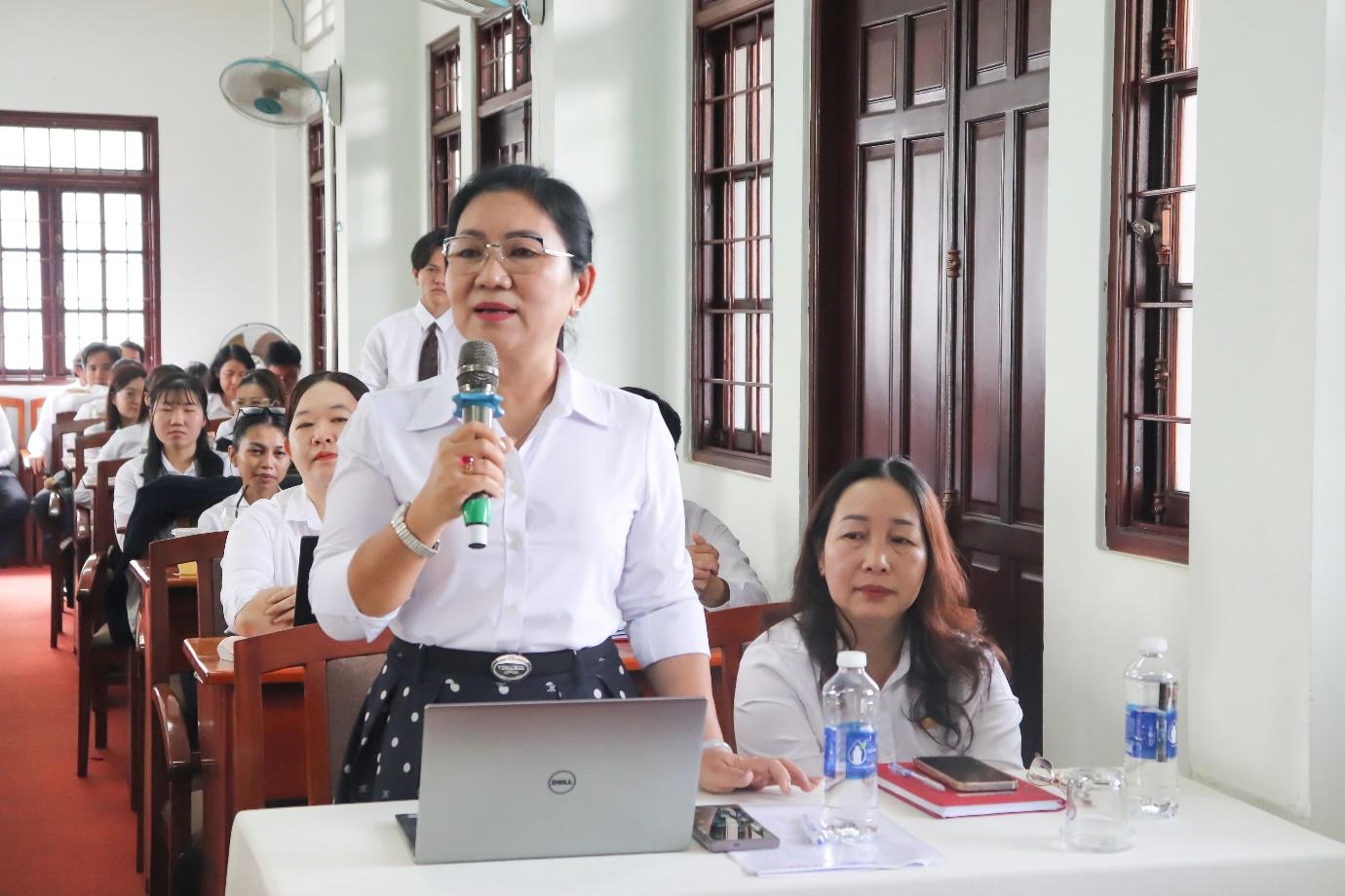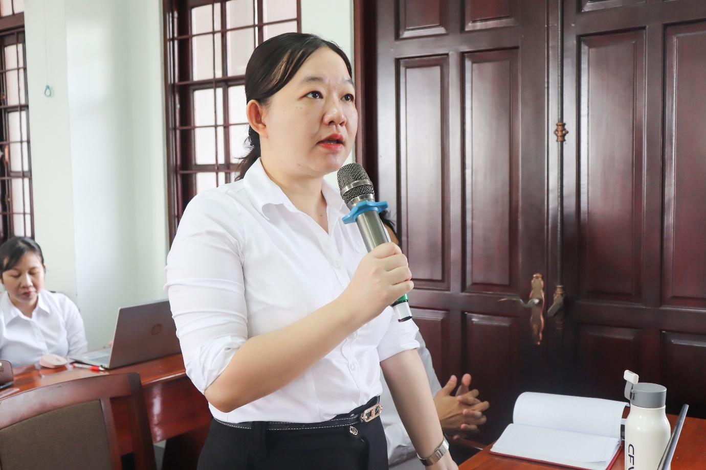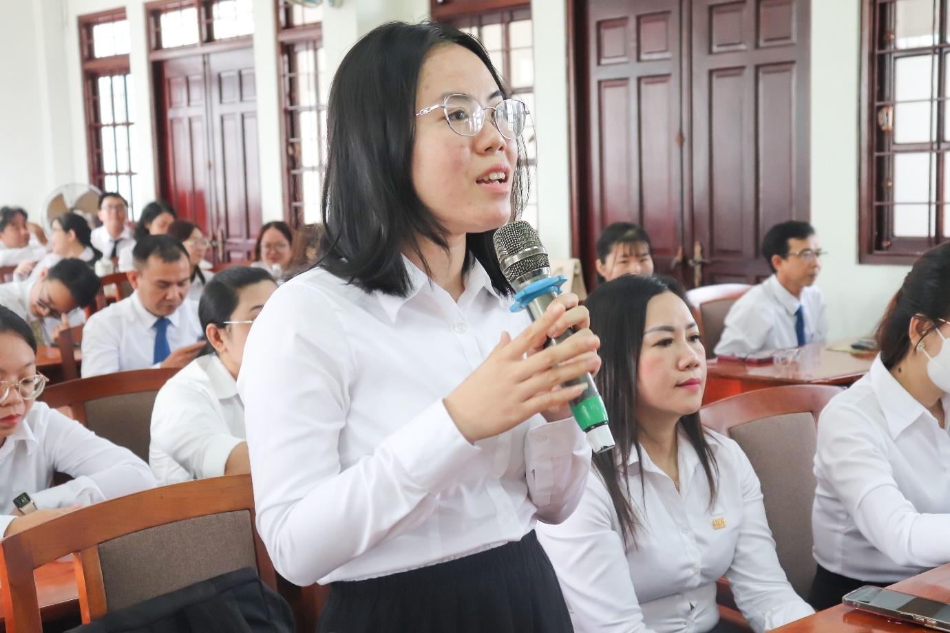 ThS. Bùi Thị Cẩm Tú - Phó Bí thư Chi đoàn cơ quan thay mặt đội ngũ giảng viên trẻ đóng góp ý kiến tại Hội nghị