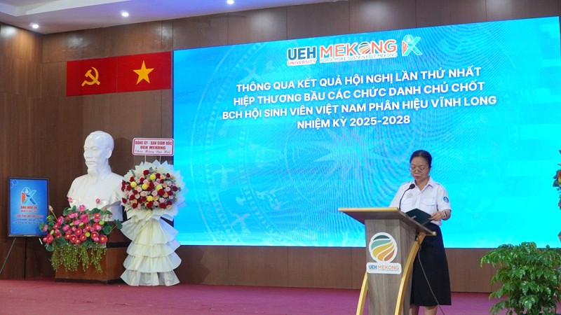 Phát biểu chỉ đạo tại Đại hội, đồng chí Trần Thị Ngọc Thoại - Ủy viên ban Thường vụ tỉnh Đoàn, Phó Chủ tịch thường trực Hội Sinh viên Việt Nam tỉnh Vĩnh Long đánh giá cao tinh thần chủ động, sáng tạo và trách nhiệm của sinh viên UEH Mekong trong nhiệm kỳ vừa qua. Đồng chí ghi nhận nhiều hoạt động hiệu quả của Hội Sinh viên trường trong lĩnh vực hỗ trợ học tập, nghiên cứu khoa học, tình nguyện vì cộng đồng và phát triển kỹ năng, góp phần lan tỏa hình ảnh sinh viên UEH năng động, tri thức và giàu khát vọng cống hiến. Đồng chí nhấn mạnh: “Hội Sinh viên Phân hiệu Vĩnh Long cần tiếp tục phát huy vai trò nòng cốt trong phong trào “Sinh viên 5 tốt”; tăng cường giáo dục chính trị, đạo đức, lối sống; đẩy mạnh mở rộng giao lưu quốc tế; ứng dụng chuyển đổi số trong hoạt động phong trào Hội. Ban Thư ký Hội Sinh viên Việt Nam tỉnh Vĩnh Long kỳ vọng Hội Sinh viên Phân hiệu sẽ tiếp tục là lực lượng chủ lực, dẫn dắt phong trào sinh viên tại địa phương phát triển ngày càng mạnh mẽ và bền vững”.