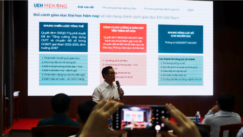 Chiều ngày 09/10/2025, tại Hội trường A3.1 - UEH Mekong, Khoa Quản trị đã tổ chức buổi Tọa đàm chuyên môn với chủ đề "Nâng cao chất lượng giảng dạy: Phương pháp giảng dạy & đánh giá sinh viên". Sự kiện này nhằm tiếp nối định hướng chuyển giao tri thức, tập trung vào việc nâng cao chất lượng giảng dạy của đội ngũ giảng viên, góp phần xây dựng nền tảng vững chắc cho sự phát triển giáo dục bền vững của nhà trường.