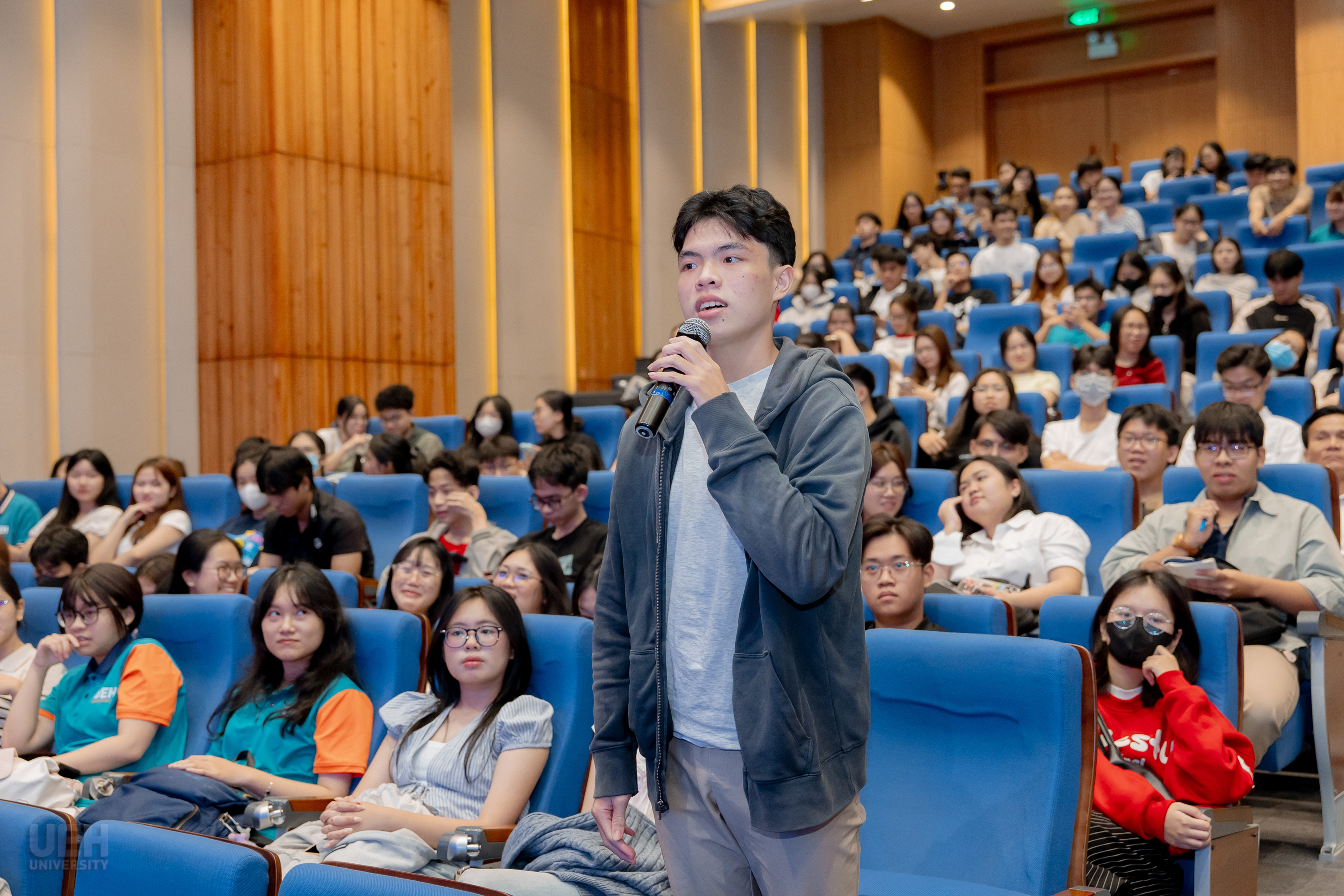 Tại buổi Lễ, Ban Tổ chức đã giới thiệu chi tiết về cuộc thi năm nay, cũng như những kiến thức đầu tư cơ bản – hành trang quan trọng dành cho các bạn sinh viên khi bước vào UOB Investment Challenge 2025. Sau phần công bố thể lệ và giải thưởng, không khí hội trường trở nên sôi động hơn với minigame chủ đề Đầu tư - Tài chính. Sinh viên hào hứng tham gia, đồng thời đặt nhiều câu hỏi xoay quanh tiêu chí chấm điểm, yêu cầu và lộ trình, thể hiện sự quan tâm và quyết tâm chinh phục cuộc thi.