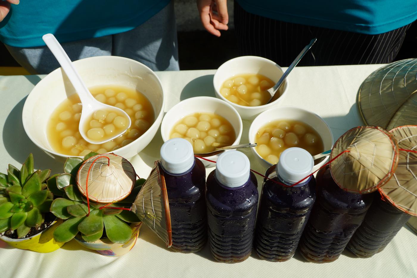 Ban Giám khảo đến từng gian hàng dự thi để chấm điểm món bánh và nước uống