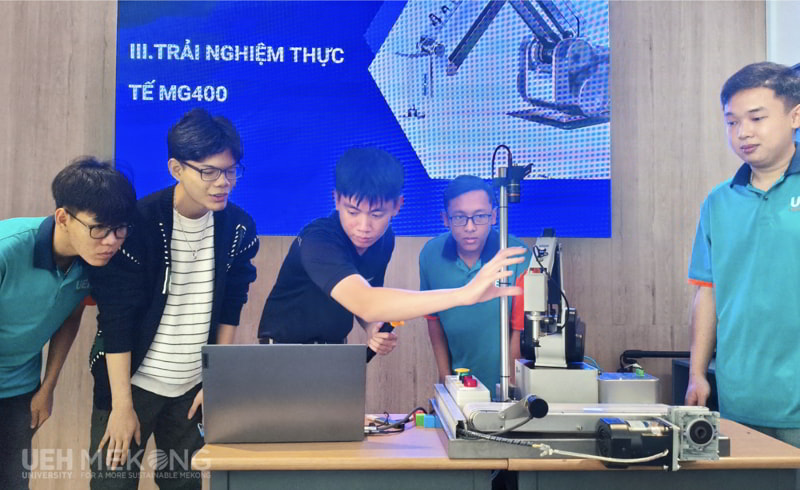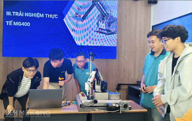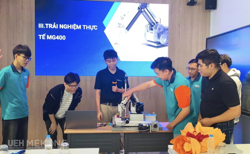 Điểm nhấn thu hút nhất của chương trình chính là phần trải nghiệm thực tế. Dưới sự hướng dẫn tận tình của chuyên gia từ Công ty TNHH Kamogawa, các bạn sinh viên đã trực tiếp vận hành thiết bị Robot MG400. Việc được tận mắt chứng kiến và trực tiếp điều khiển những thiết bị công nghệ hiện đại tạo sự hào hứng, thích thú và khơi gợi niềm đam mê sáng tạo cho các bạn sinh viên tham gia chương trình.