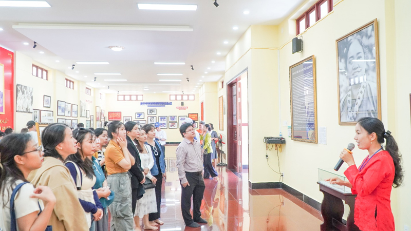 Đoàn tham quan phòng trưng bày và nghe thuyết minh về cuộc đời hoạt động cách mạng của Nữ tướng