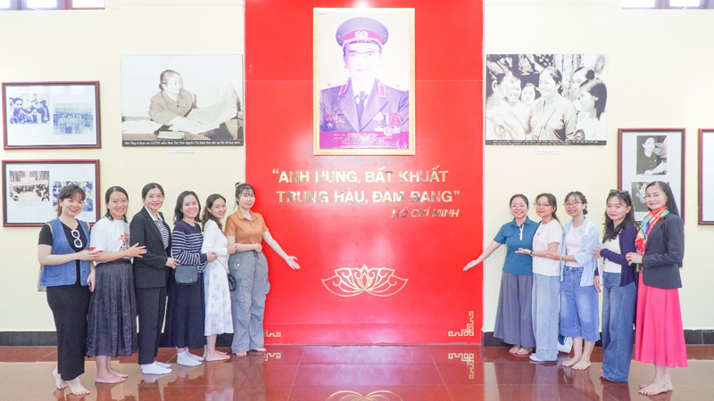 Sau khi dâng hoa, dâng hương, đoàn đã tham quan phòng trưng bày hình ảnh, tư liệu, hiện vật minh họa và nghe thuyết minh về cuộc đời cũng như sự nghiệp cách mạng của Nữ tướng. Phòng trưng bày hiện đang bảo tồn rất nhiều hiện vật quý giá như áo bà ba, khăn rằn, áo gió, võng, bút, mắt kính, sổ tay… mà bà đã từng sử dụng trong suốt quá trình hoạt động cách mạng.
