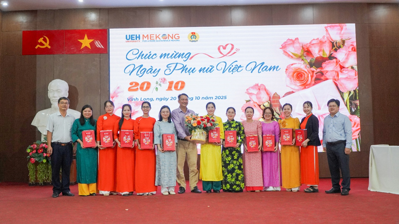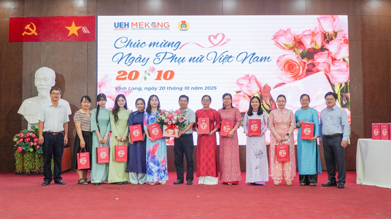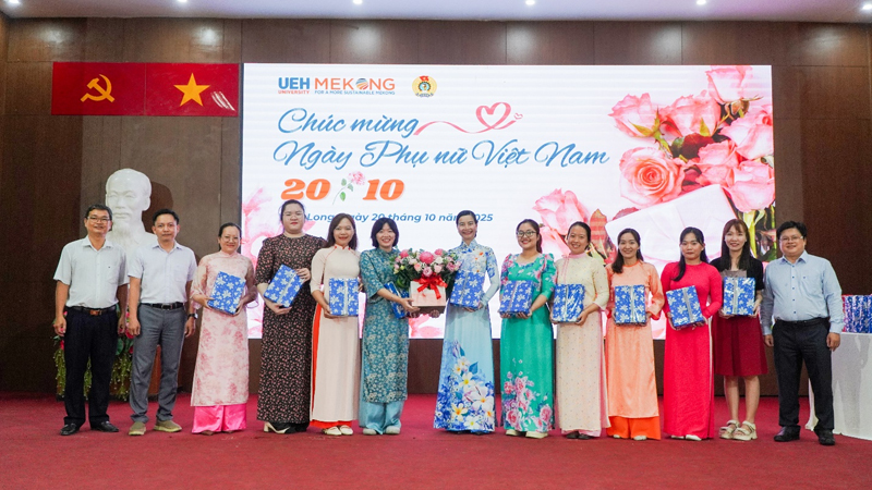 Từ ngày 15/10 đến ngày 20/10/2025, Công đoàn cơ sở UEH Mekong đã phối hợp với Ban Giám đốc Phân hiệu tổ chức các hoạt động ý nghĩa chào mừng 95 năm Ngày thành lập Hội Liên hiệp Phụ nữ Việt Nam (20/10/1930 - 20/10/2025), gồm: về nguồn - viếng Khu tưởng niệm nữ tướng Nguyễn Thị Định; tham quan, dã ngoại; hưởng ứng “Tuần lễ Áo dài, Áo bà ba” năm 2025 và họp mặt tặng quà 20/10 cho nữ viên chức, người lao động. Các hoạt động được tổ chức nhằm ôn lại truyền thống vẻ vang của người phụ nữ Việt Nam qua các thời kỳ; tạo không khí vui tươi, gắn kết trong VC-NLĐ đặc biệt là ghi nhận, tôn vinh những đóng góp của nữ VC-NLĐ cho quá trình phát triển của Phân hiệu.