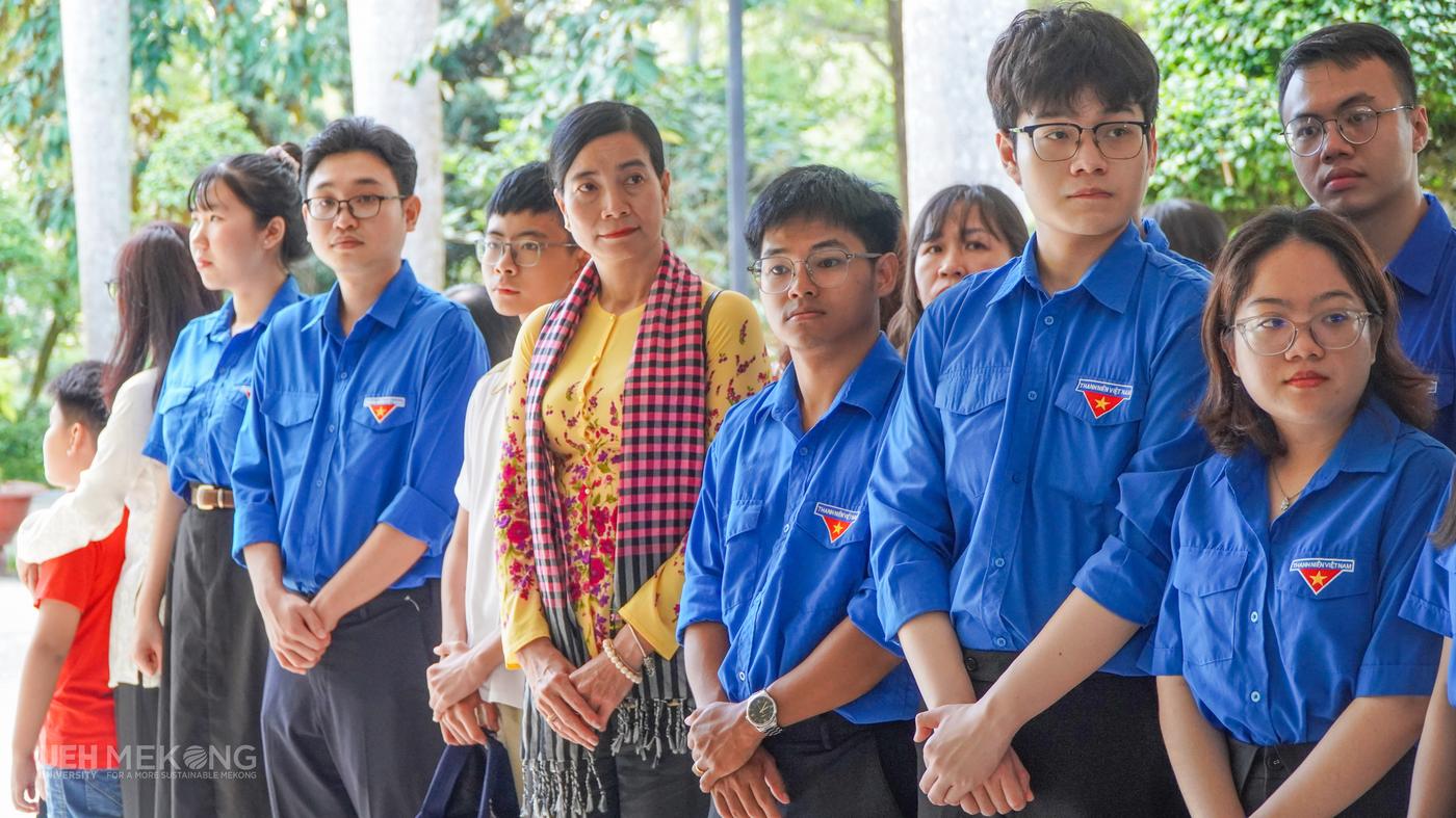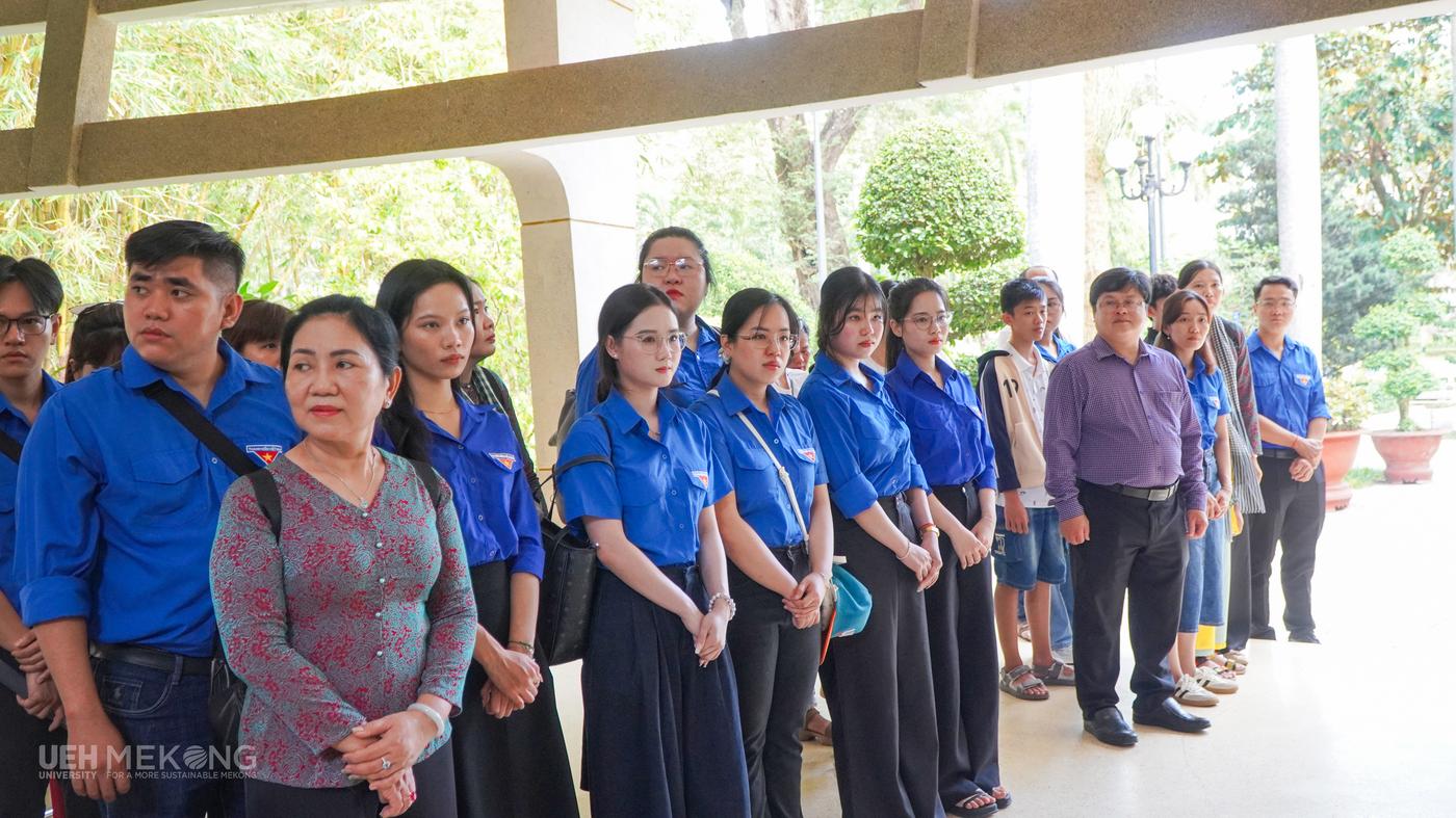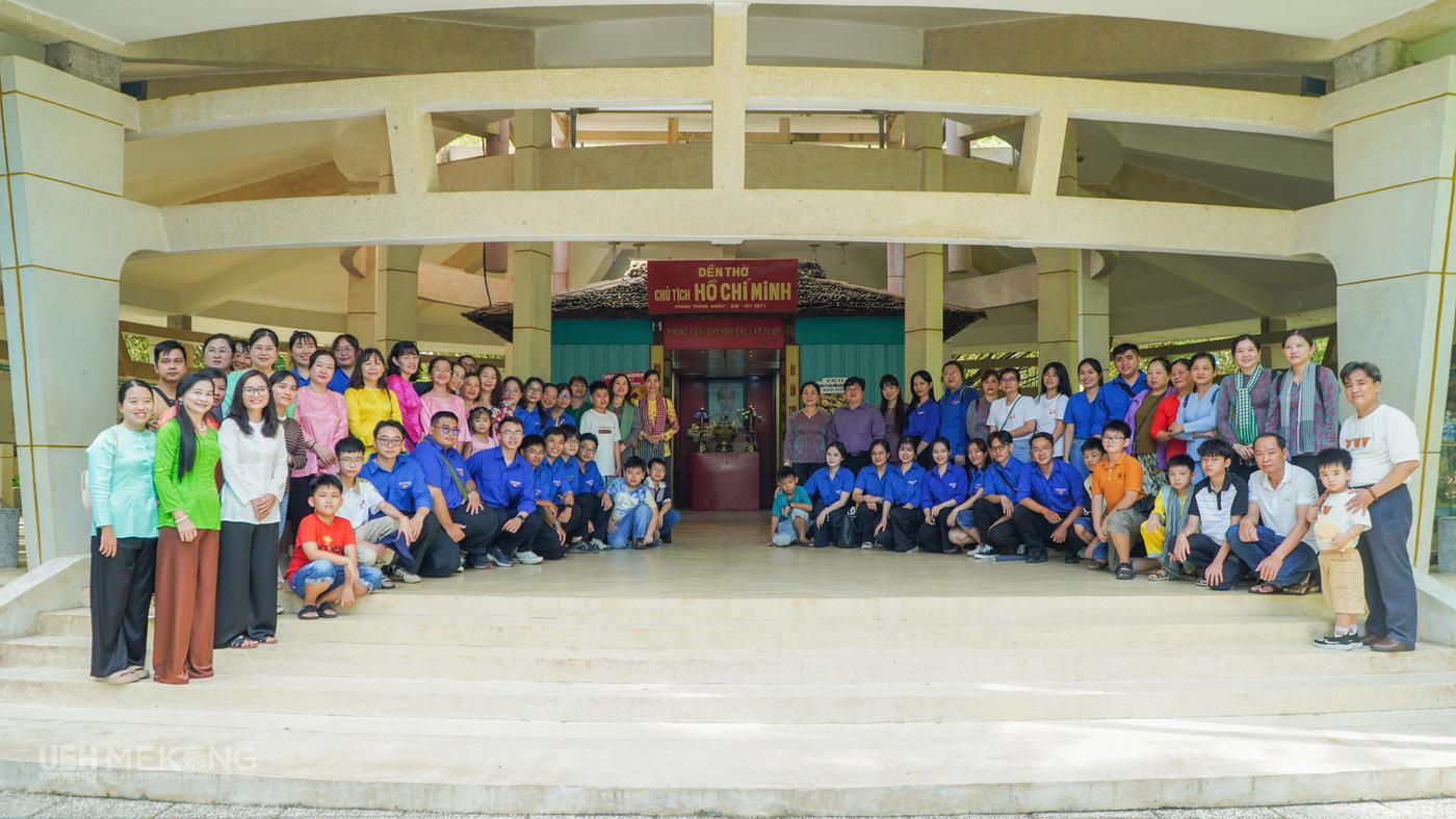 Đoàn viên, viên chức, người lao động UEH Mekong về nguồn tại Khu di tích lịch sử, văn hóa cấp quốc gia Đền thờ Chủ tịch Hồ Chí Minh (Phường Trà Vinh, tỉnh Vĩnh Long)