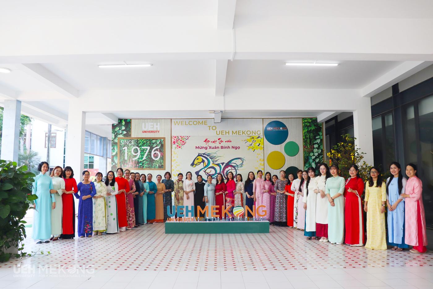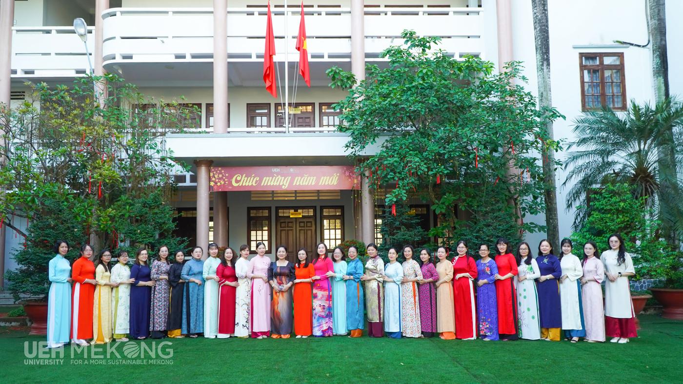 - Sáng thứ Hai, ngày 02/3/2026, trong không khí trang nghiêm của lễ chào cờ đầu tuần, nữ VC-NLĐ UEH Mekong đã đồng loạt mặc áo dài truyền thống và chụp ảnh lưu niệm hưởng ứng “Tuần lễ Áo dài” năm 2026. Những tà áo dài thướt tha với sắc màu trang nhã đã làm bừng sáng khuôn viên UEH Mekong, tôn lên vẻ đẹp dịu dàng, thanh lịch của nữ viên chức, người lao động. Hoạt động không chỉ góp phần tôn vinh giá trị của trang phục truyền thống mà còn lan tỏa hình ảnh người phụ nữ hiện đại - bản lĩnh, trí tuệ và nhân văn, đồng thời thể hiện tinh thần đoàn kết và nét đẹp chuyên nghiệp của tập thể nữ VC-NLĐ UEH Mekong.
